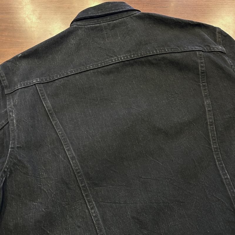 - 袖がリサイズされております。デニム特有の色落ちやアタリ、スレ等の着用感がございますが、その他に目立つ汚れやダメージ等は無く、古着慣れされた方でしたら問題無く着用していただける状態です。