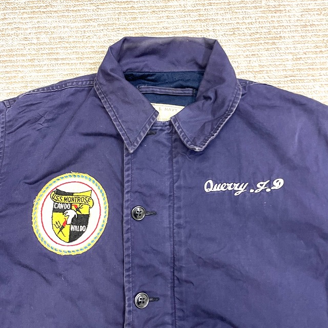 - 画像のように、汚れ、スレ、小傷、色褪せがあり、袖にワッペンを外したような跡がございます。