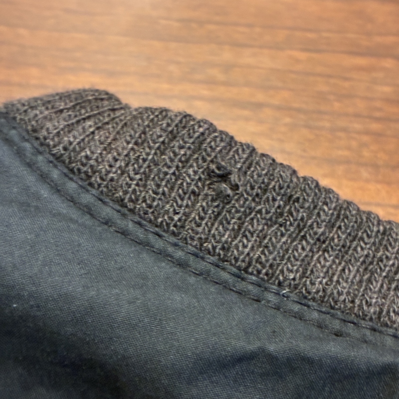 - 多少のアタリや色褪せ、リブ部分に擦れや伸び、襟に一部画像の様なダメージと中綿の抜け等が見られます。