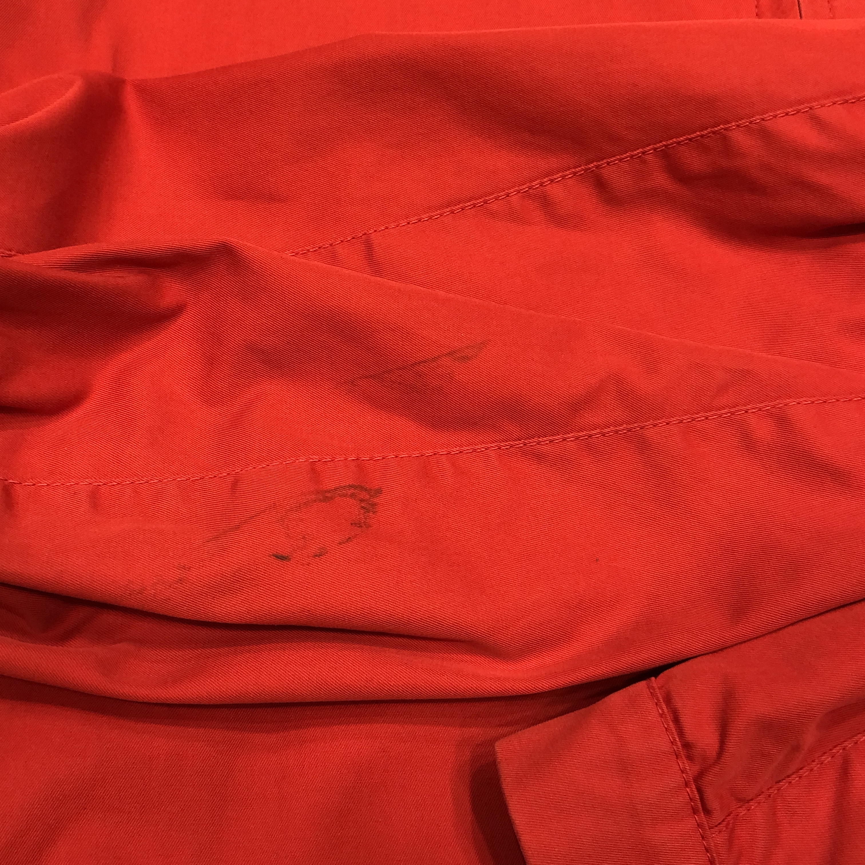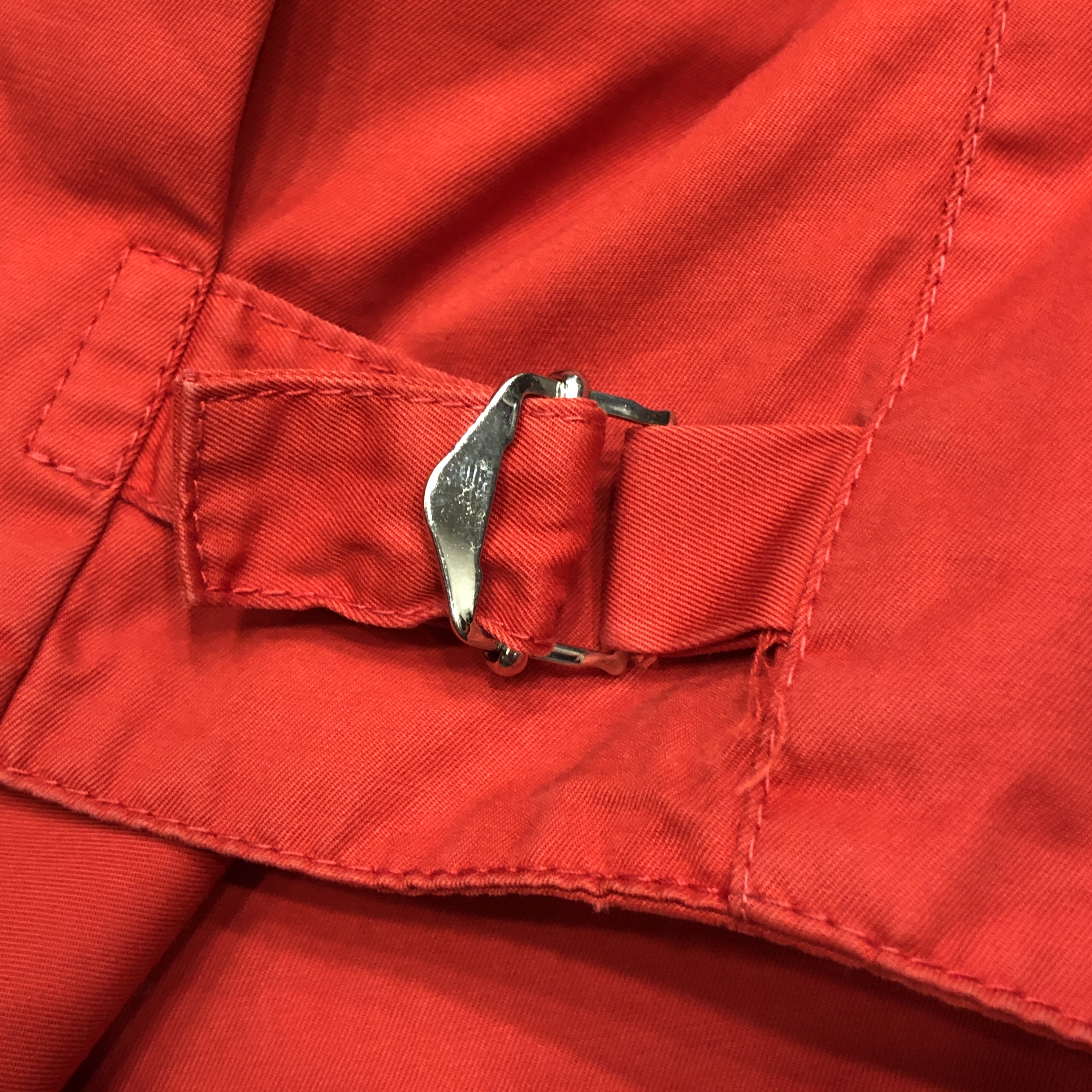 まず目を引くのは、鮮烈なレッドの色合いと上品な光沢感。英国王室御用達の称号を冠するグレンフェルクロス――その名が示す通り、緻密に織り上げられたコットン100%生地は、しっとりとした質感と強靭な耐久性、そしてハリのある美しい表情を兼ね備えます。さらりと羽織るだけで、オーセンティックなブリティッシュムードが纏える一着。