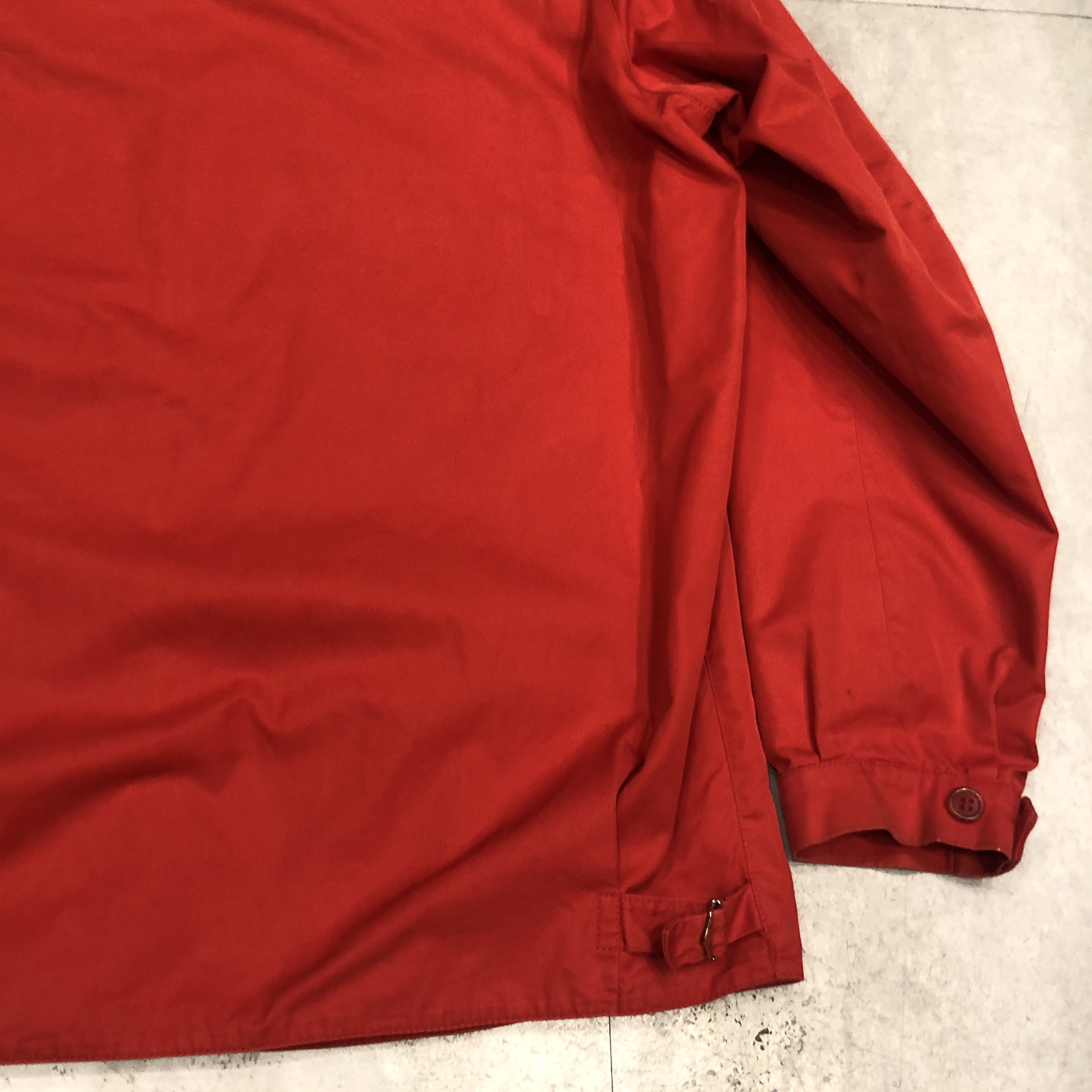 この時代のグレンフェルらしい、ミニマルかつ実用性重視のディテール。大ぶりのラグランスリーブやスラントポケット、すっきりとしたフロントジッパー(AERO社製)、袖口や裾のボタン仕様まで、シンプルながらも着る人の動きを妨げない設計が光ります。裏地まで全てコットンで統一されているのもヴィンテージならでは。タグのデザインや縫製からも、この時代特有の手仕事の温もりが感じられます。