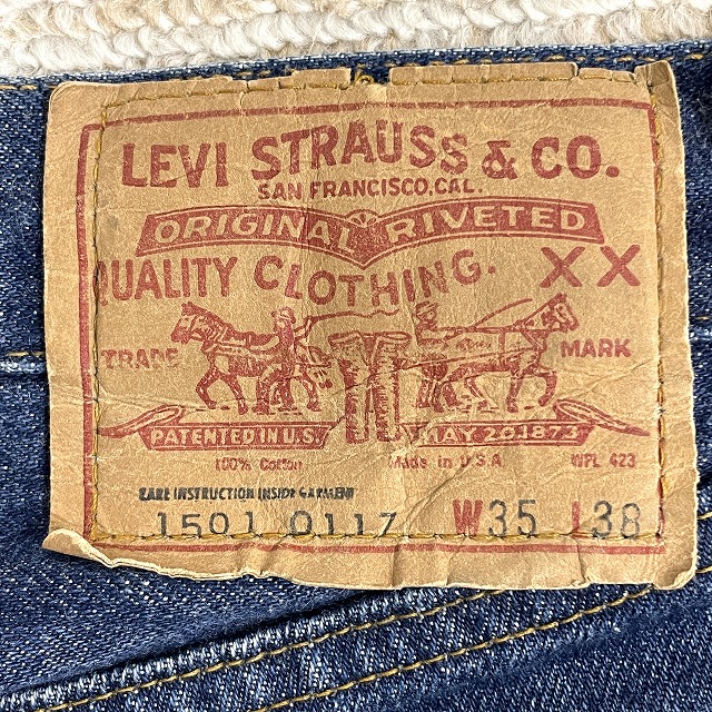トップボタン裏刻印『6』、バックポケット裏 シングルステッチ