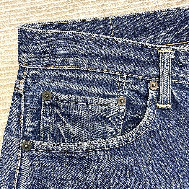 右ヒップポケット付け根にキズがあり、裾にリペアがございます。
