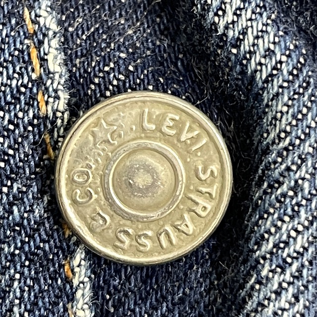 - トップボタン裏刻印『E』、Vステッチ、ウェストシングル、足長R、不均V