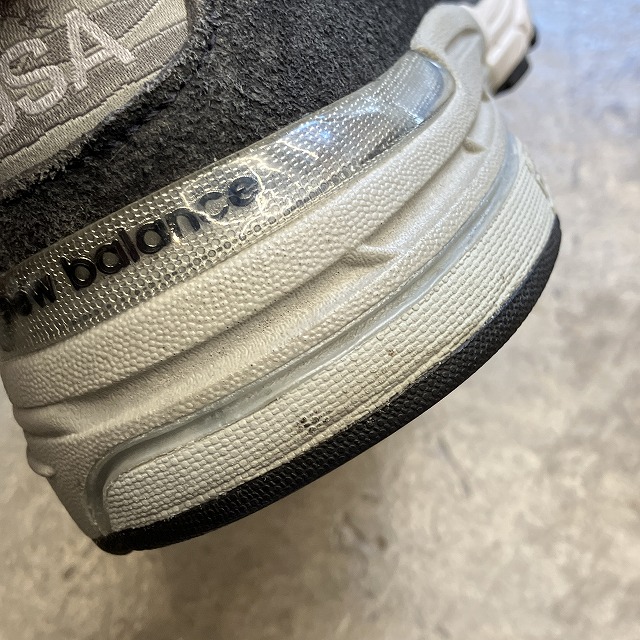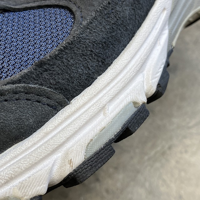 - アッパー部分にスレ、ミッドソールやアウトソールに薄汚れがみられます。その他、若干のすり減り等の着用感ございますが、ユーズド慣れされた方でしたら、まだまだ問題なく着用していただけます。