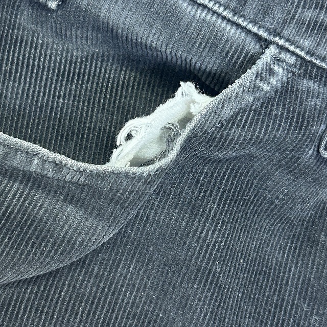 - LEVI'Sジッパー、ブラックコーデュロイ、裾シングルステッチ