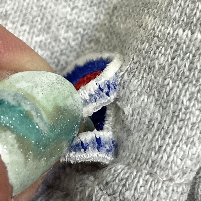 - 画像のように、薄汚れやわずかな汚れ、スレ、キズがあり、袖のロゴの接着剤に剥がれがございますが、