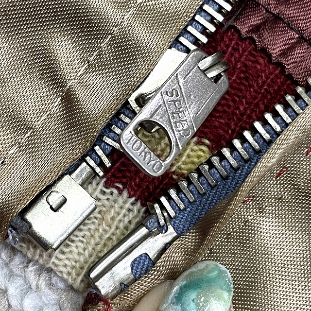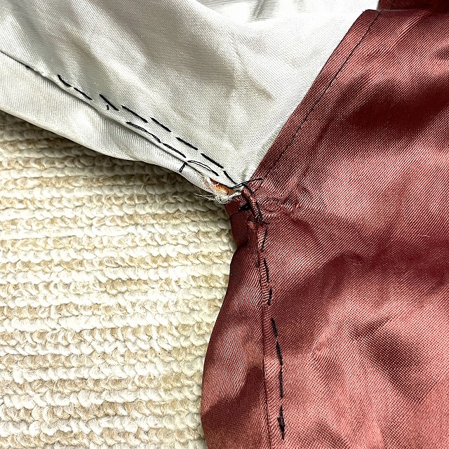 脇、ジッパー下部付近等に手縫いで簡易的なリペアがございます。