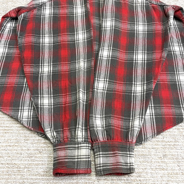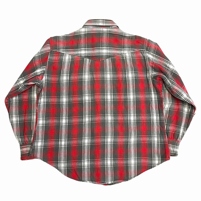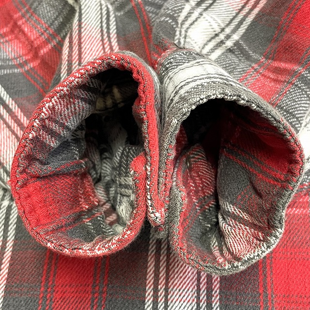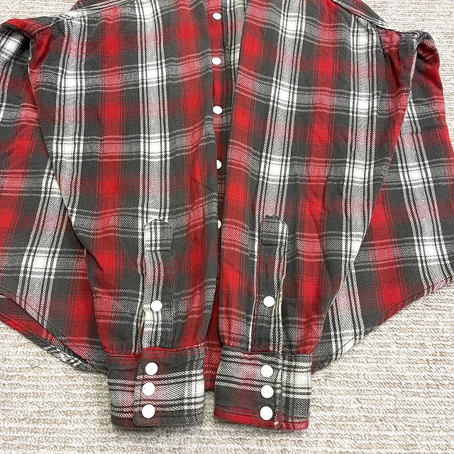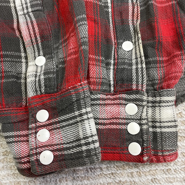 「レッド×グレー×ホワイト、跳ね上げポケット、フルスナップ」