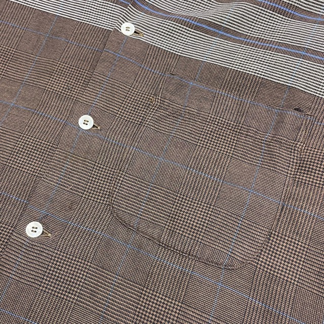 「ブラウン×ホワイト×ブルー、チェック柄、L」