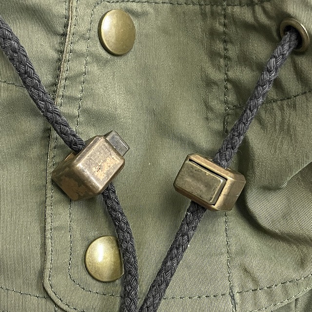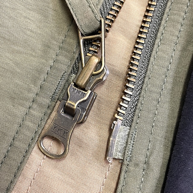 前立て部分にマジックテープが付けられており、スナップボタンの片側欠損に伴うリペアがございます。