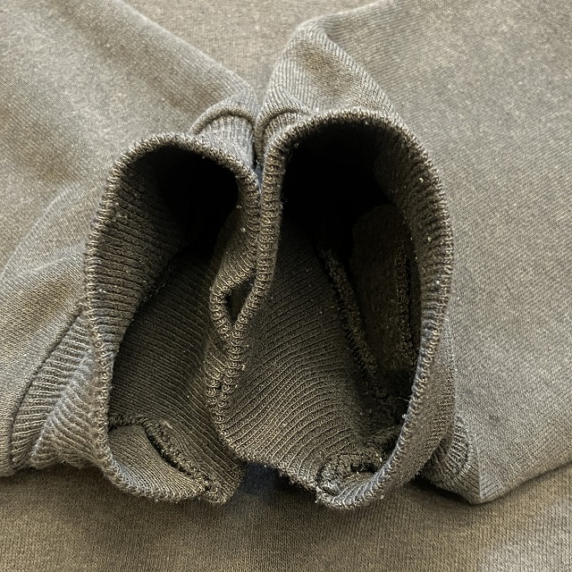 - 全体的に毛玉や、毛羽立ちがみられます。また、裾のリブに数箇所小穴がみられます。その他、薄汚れ等の年代相応の着用感ございますが、ユーズド慣れされた方でしたら、まだまだ問題なく着用していただけます。