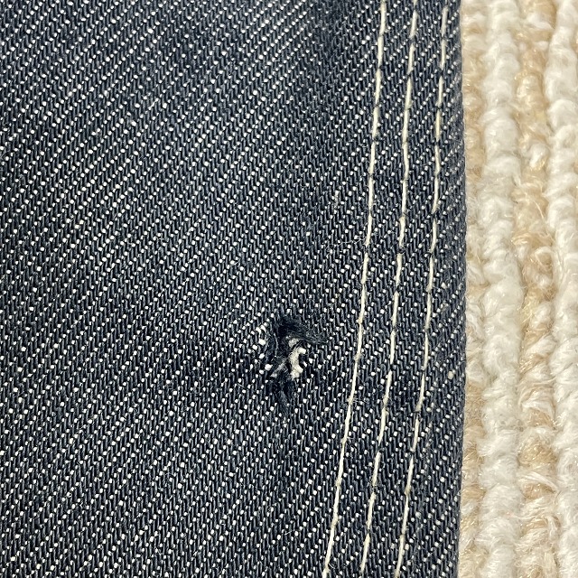 - 画像のように、汚れ、スレ、キズ、ステッチ抜けがあり、袖丈がお直しされております。