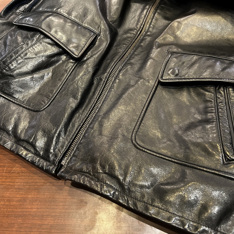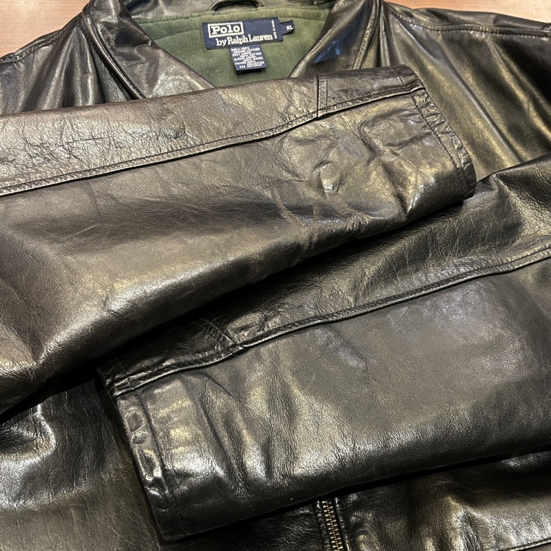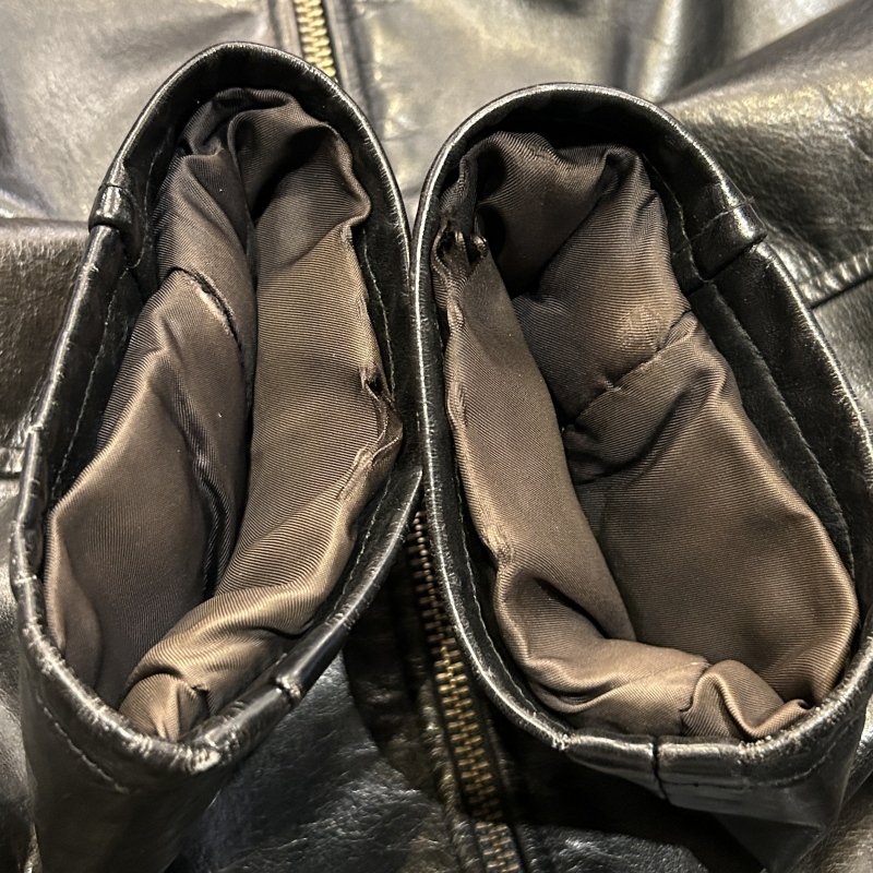 - 袖裏地にダメージや背中側の裏地に日焼けがございます。レザー特有の傷やシワ等の着用感がございますが、その他に目立つダメージ等は無く、古着慣れされた方でしたら問題無く着用していただける状態です。