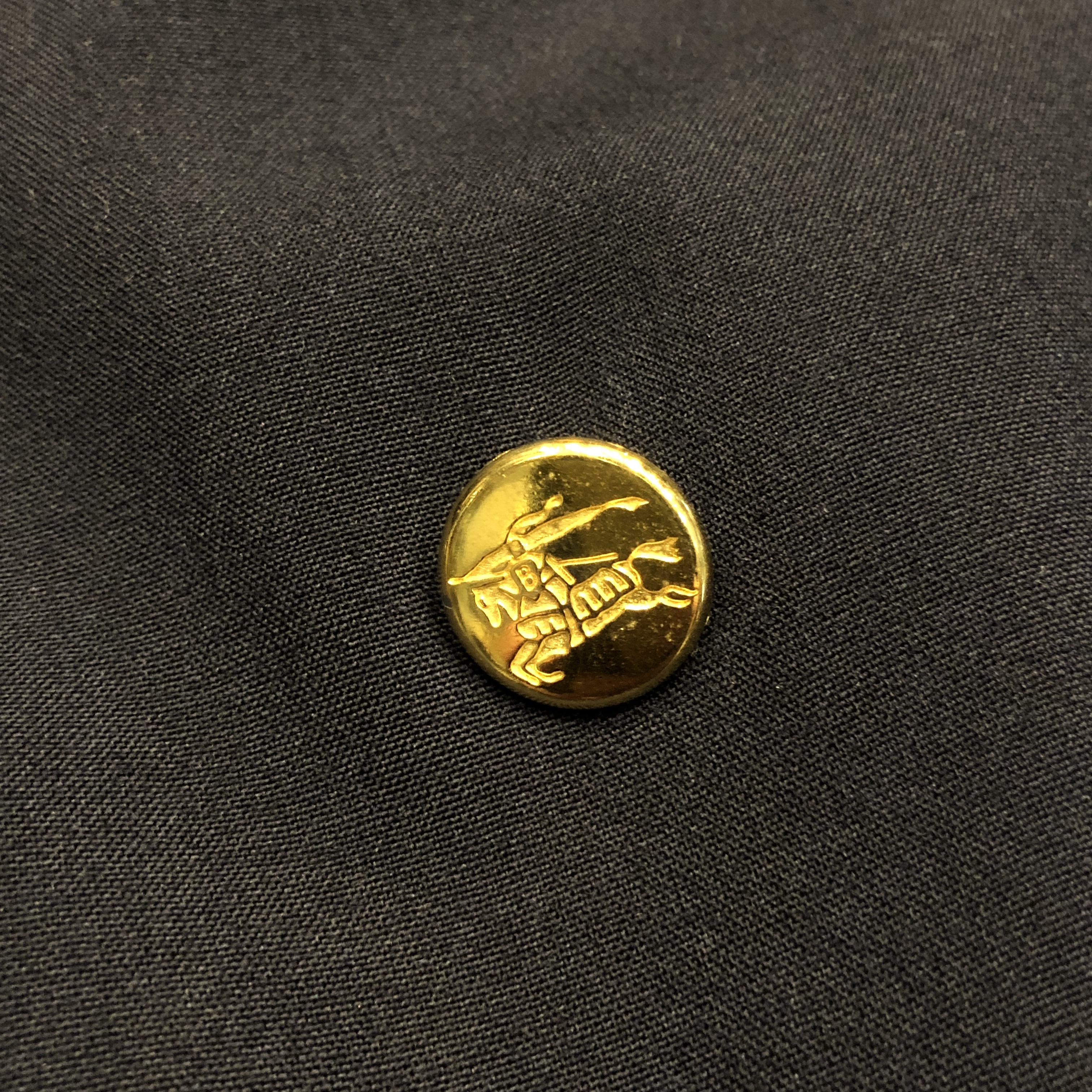 ライニングにまで散りばめられた騎士のロゴ、重厚感ある金ボタン、まさにクラシック・ブリティッシュの美学を体現したようなブレザーです。