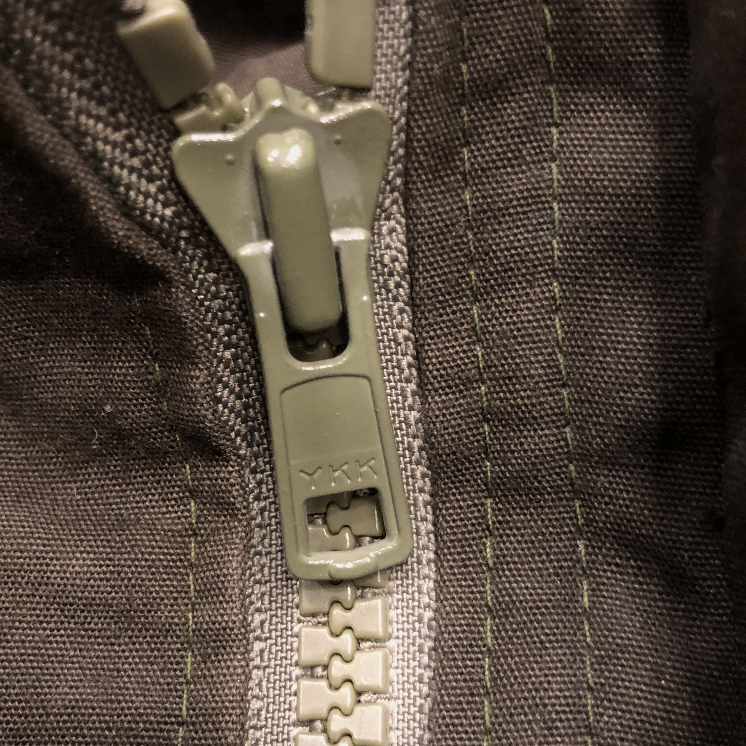 また、ジッパーにはYKK社製のジップを装備。ダークグリーンの無骨な存在感が、全体の雰囲気をぐっと引き締めます。