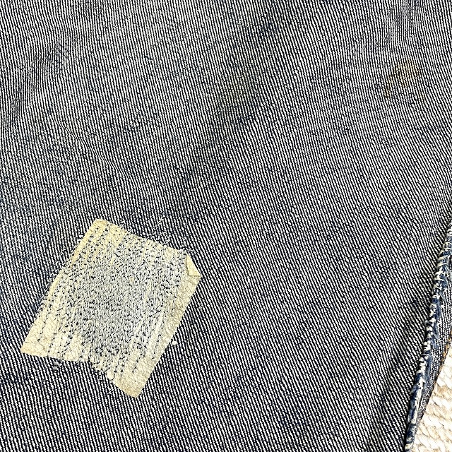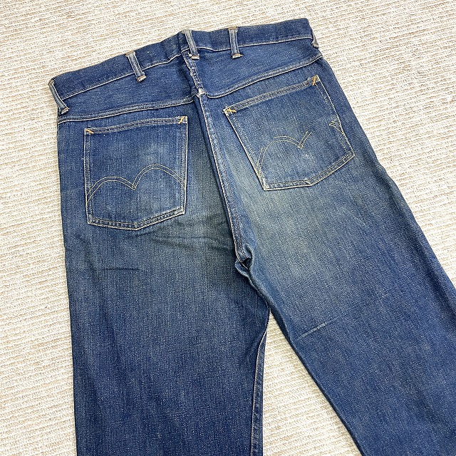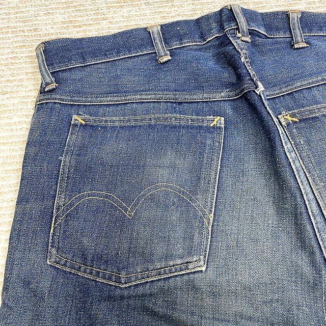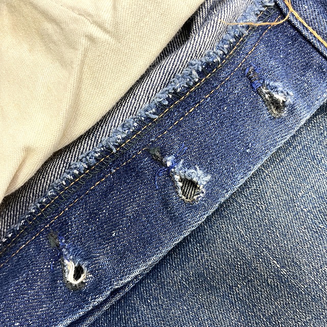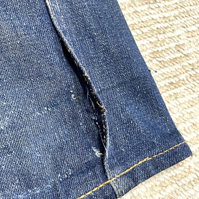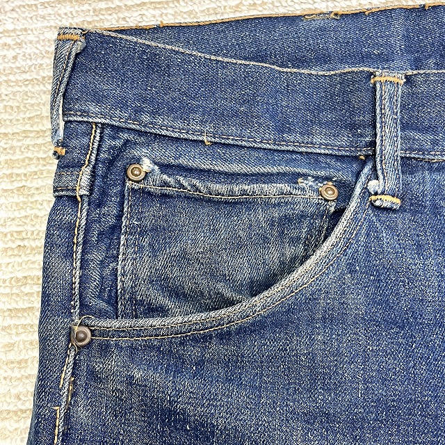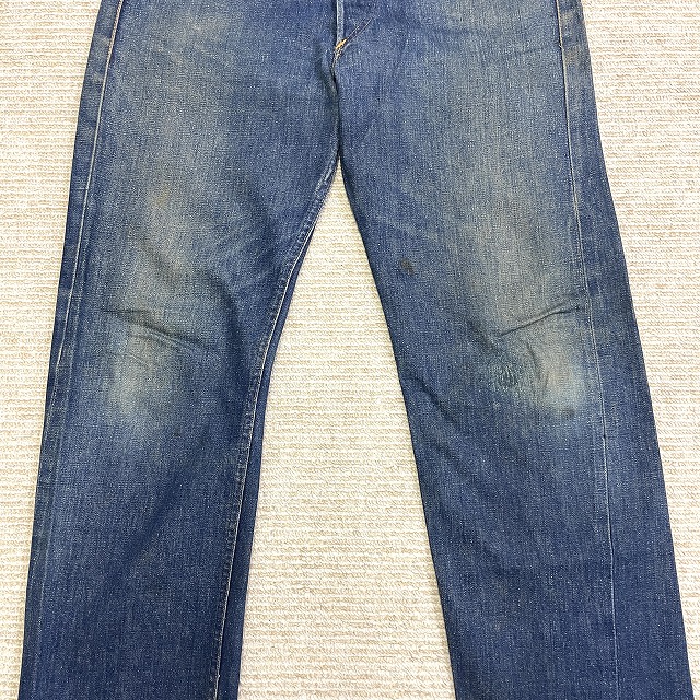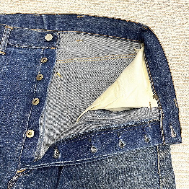 トップボタンが「LEVI'S」のボタンに交換されており、前左膝付近や右裾などにリペアがございます。