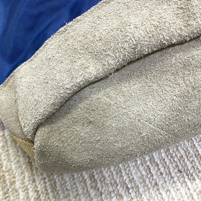 - 画像のように、汚れ、スレ、小傷があり、ショルダー付け根付近のレザー部分の縫製にステッチ抜けがございます。