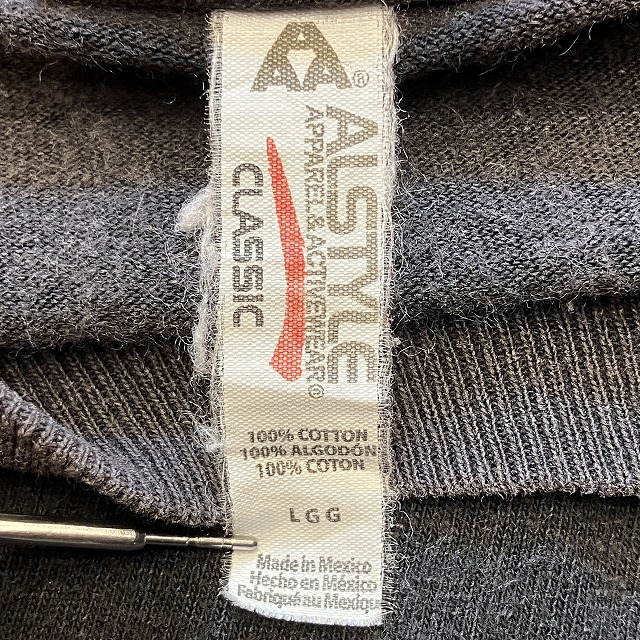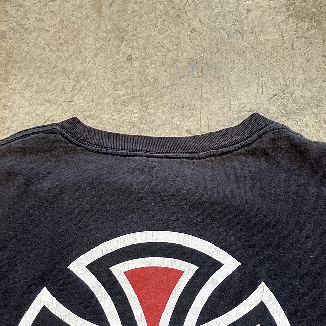 - 右袖肘付近に小穴、襟付近にヤケがみられます。その他、スレ、アタリ、プリント割れ等の着用感ございますが、ユーズド慣れされた方でしたら、まだまだ問題なく着用していただけます。