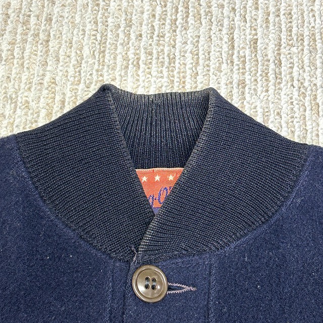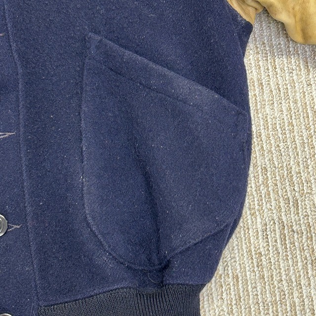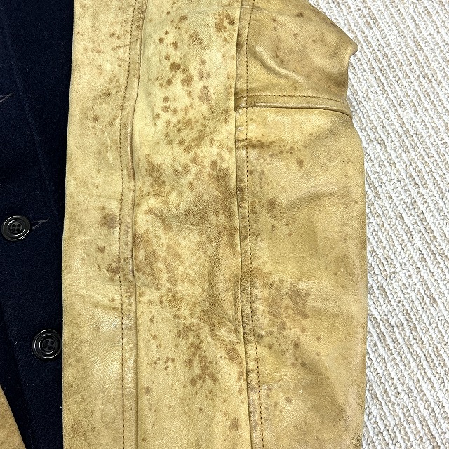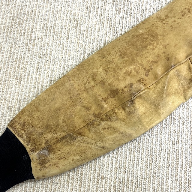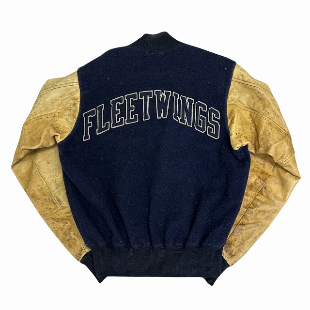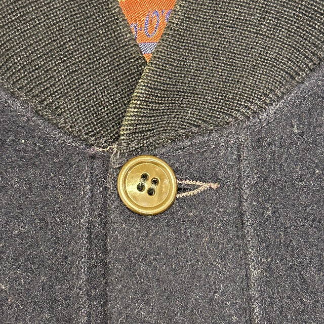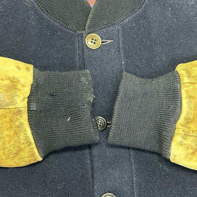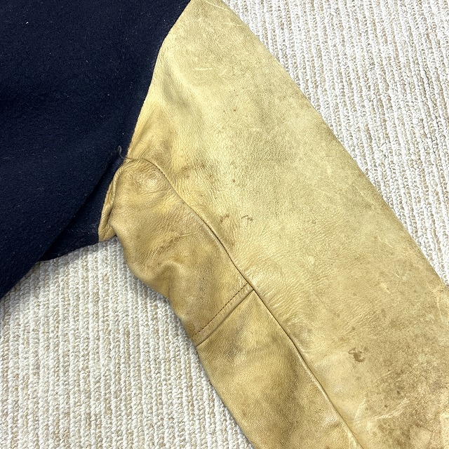 ウール×袖レザー、ボタン仕様のスタジャン。