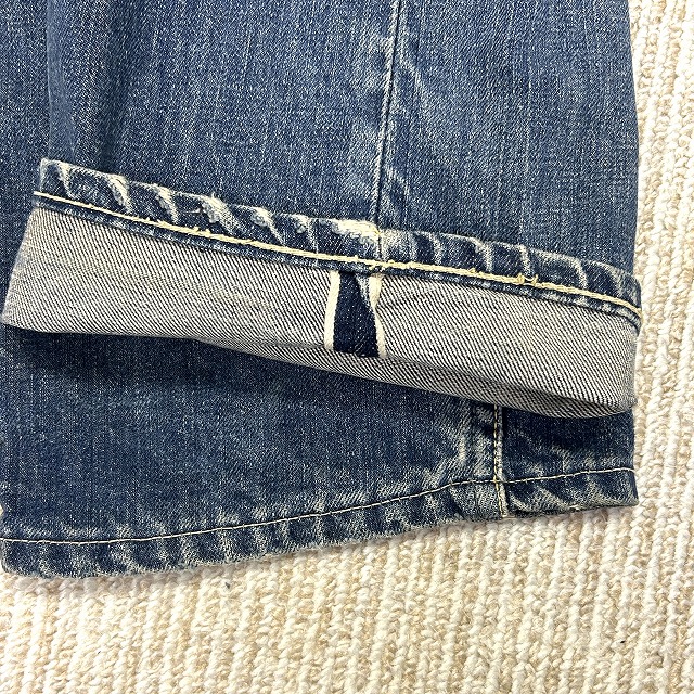「耳付き、革パッチ、股リベ、実寸W32 L28.5」