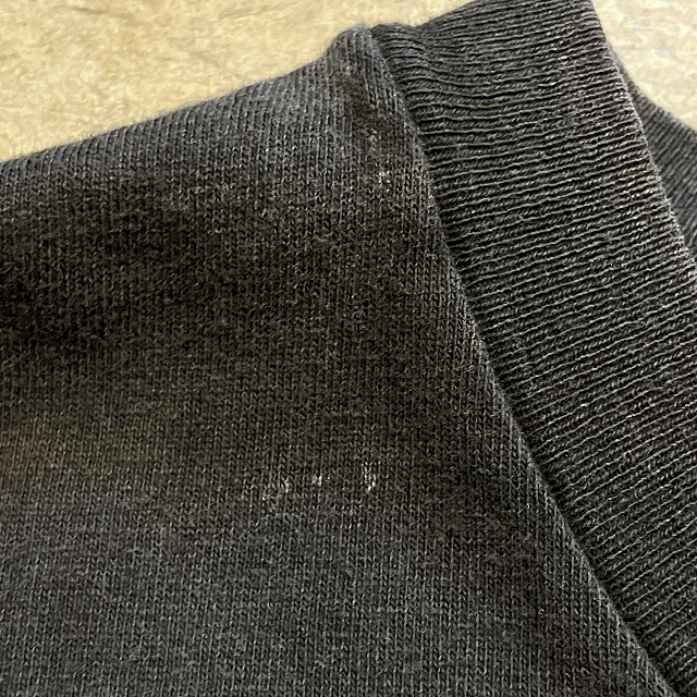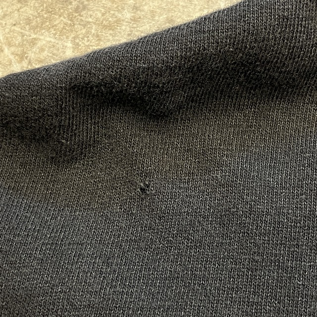 - 所々に薄汚れがみられます。また、右肩や正面プリント下に小穴がみられます。その他、スレ、アタリ等の年代相応の着用感ございますが、ユーズド慣れされた方でしたら、まだまだ問題なく着用していただけます。