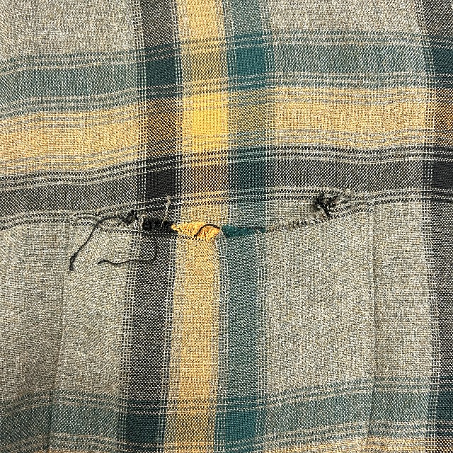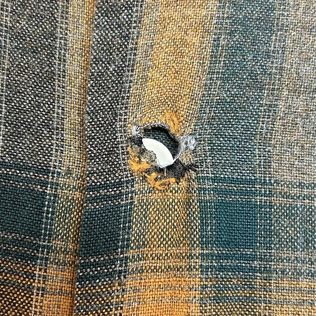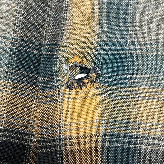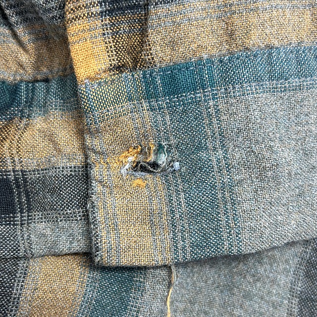 背中にリペア、ボタンホールにホツレがございます。