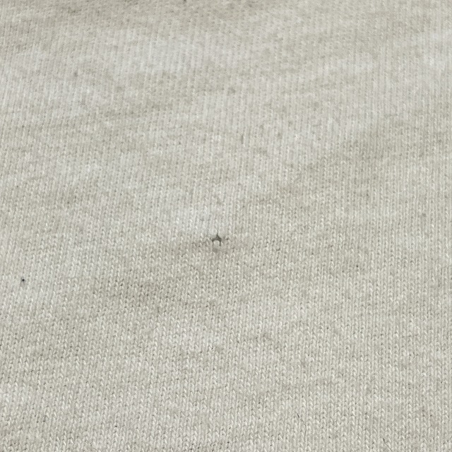- 全体的に若干の毛羽立ちがみられます。また、ボディに小穴や、薄っすら汚れがみられます。その他、スレ等の着用感ございますが、ユーズド慣れされた方でしたら、まだまだ問題なく着用していただけます。