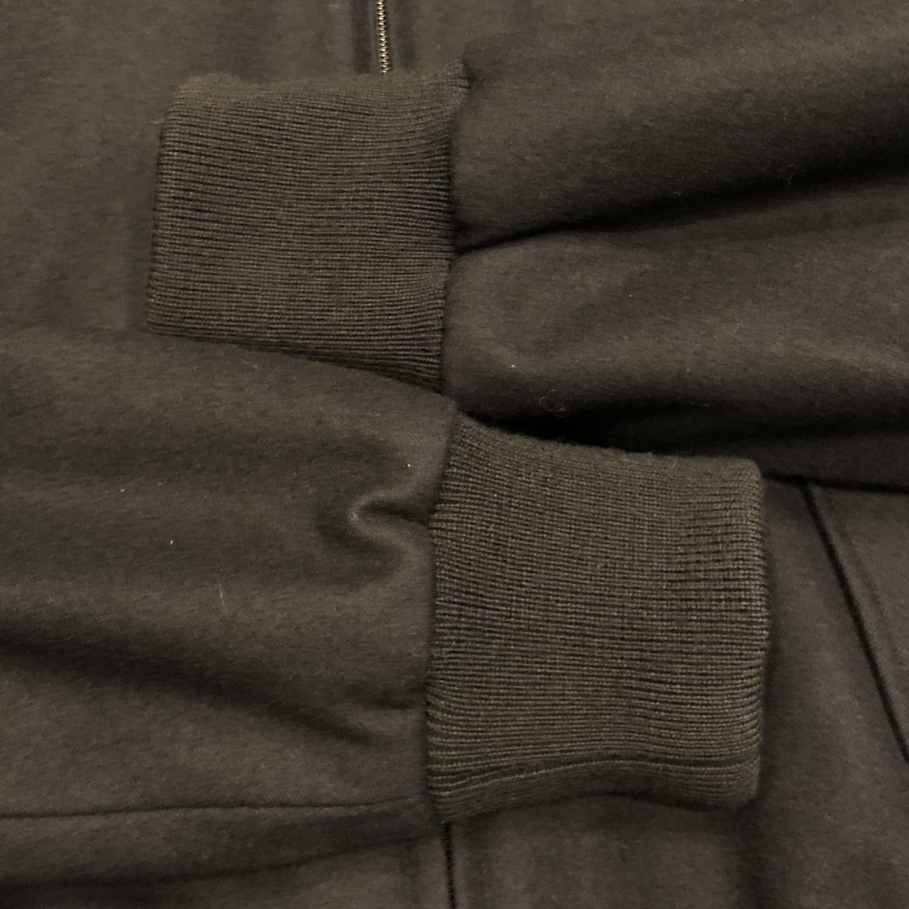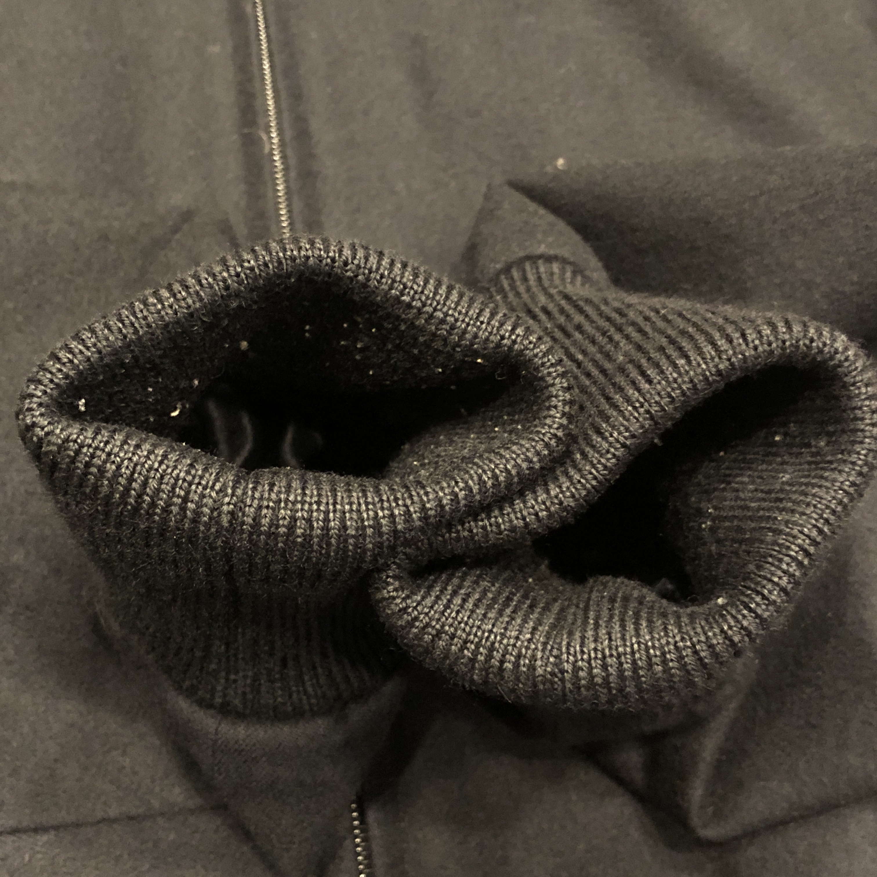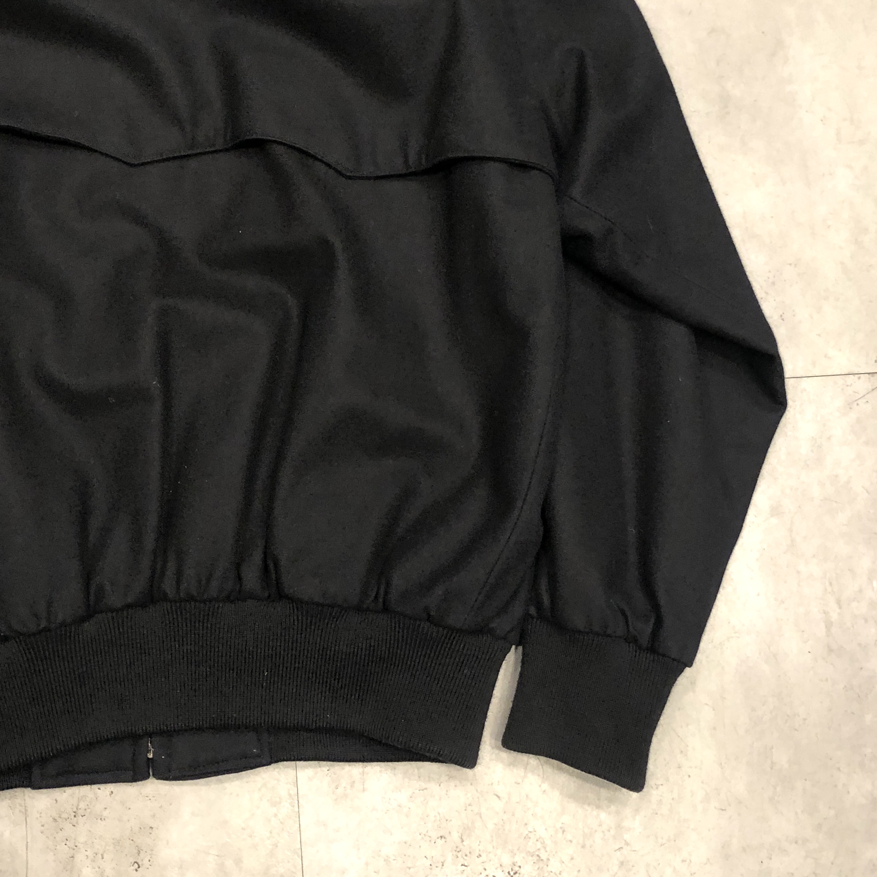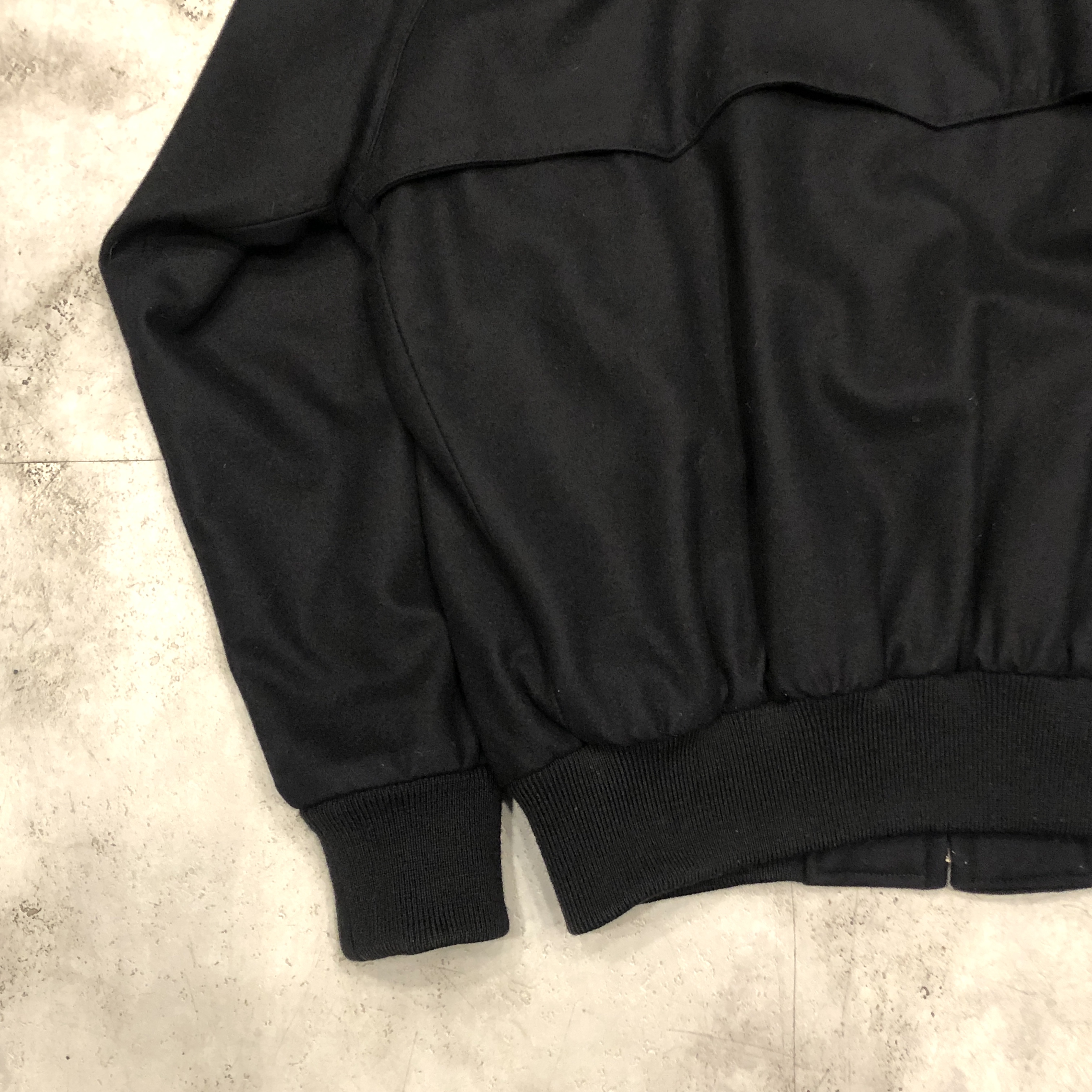 ベースはクラシックなハリントンジャケット。G-9型を踏襲しつつも、こちらはコットンではなくウール主体のファブリックを採用。表記はウール90%・ナイロン10%。しっかりとした肉感がありながらも滑らかで、どこか上品な光沢を感じる生地です。ネイビーというカラーも相まって、非常に落ち着いた大人の佇まいに仕上がっています。