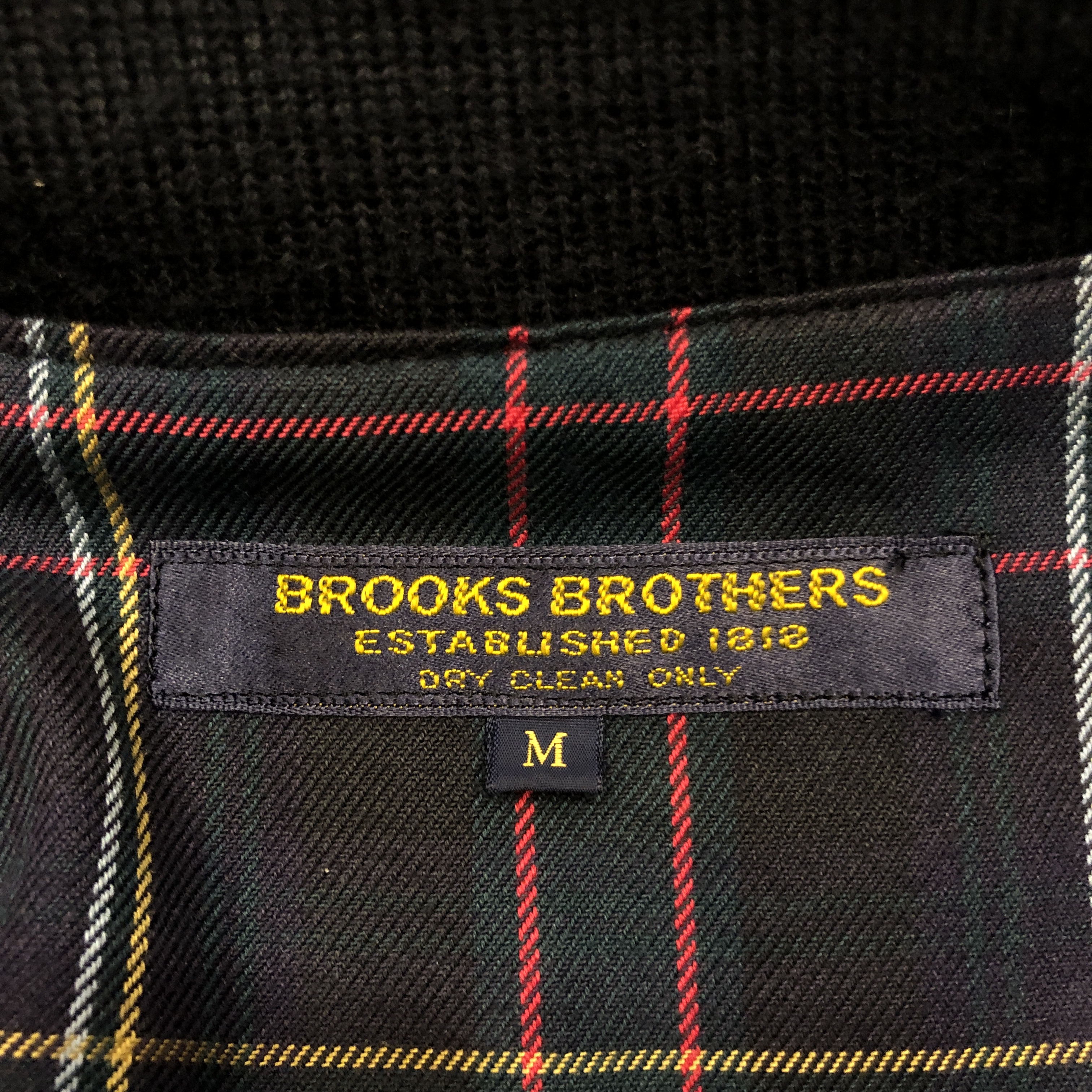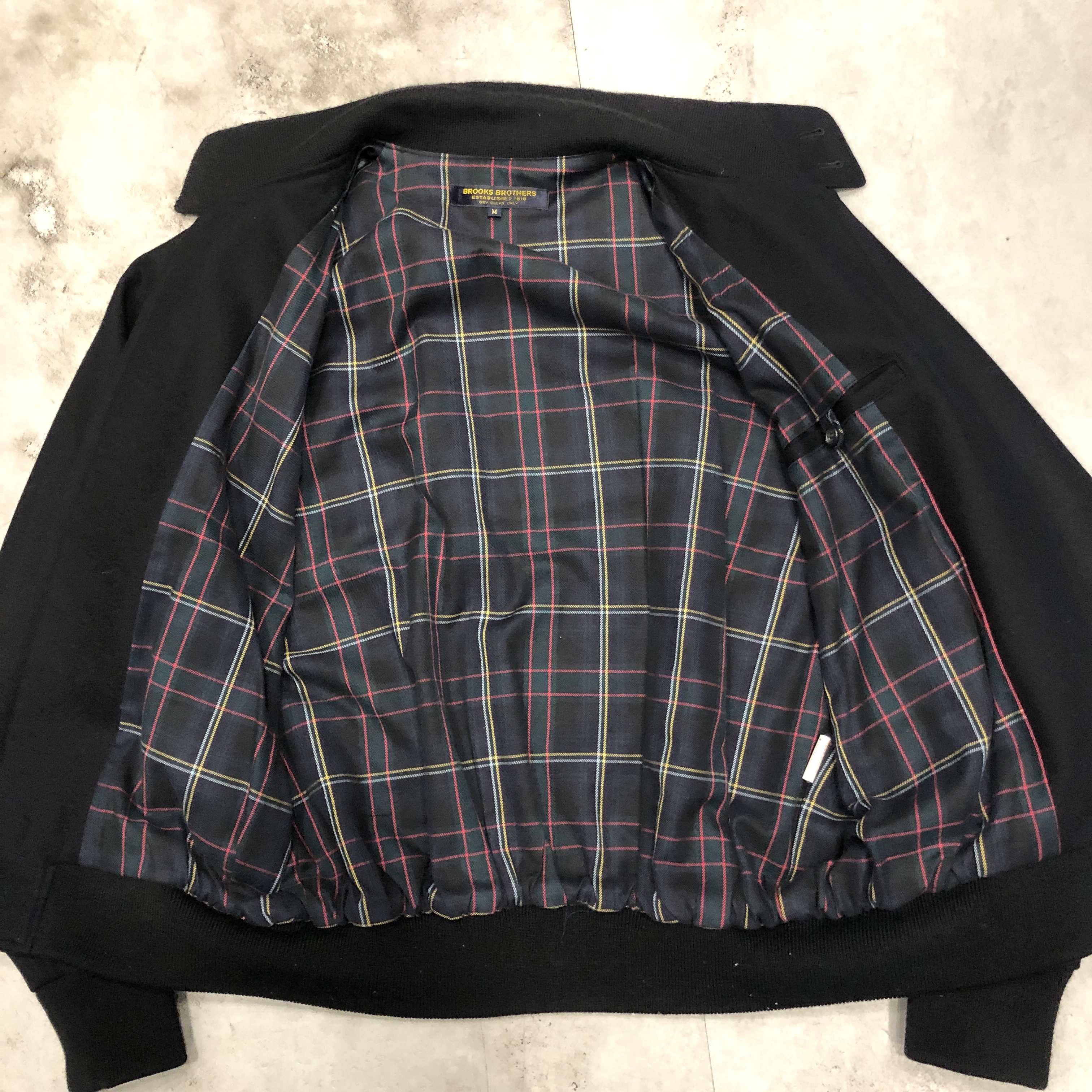 裏地にはトラッドらしいタータンチェック。ネイビーベースにレッドとイエローが走る配色で、脱いだ時にしっかりと主張してくるこのバランスが実に良い。こういった“見えない部分の美しさ”こそ、BROOKS BROTHERSらしさと言えるポイントです。