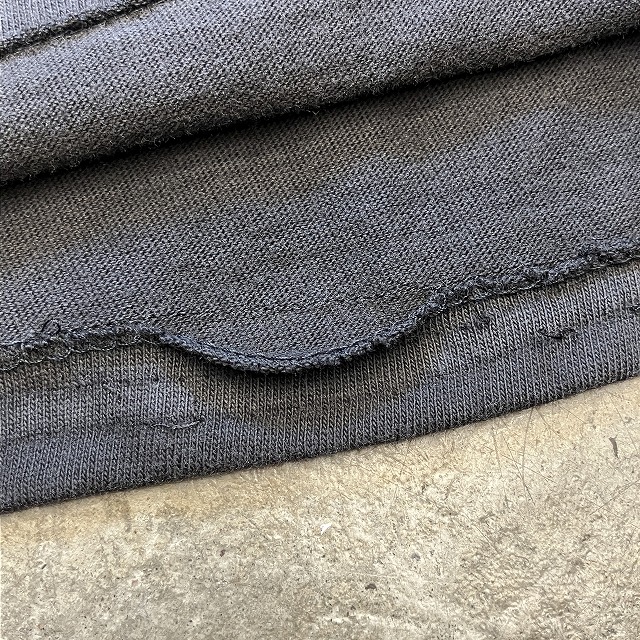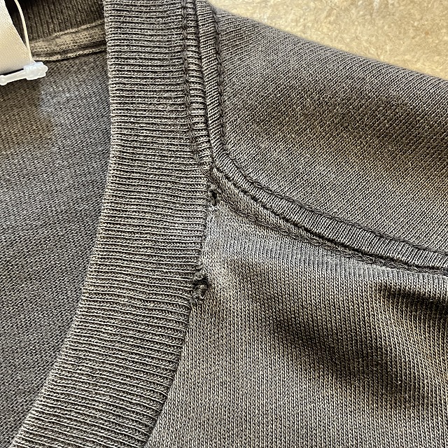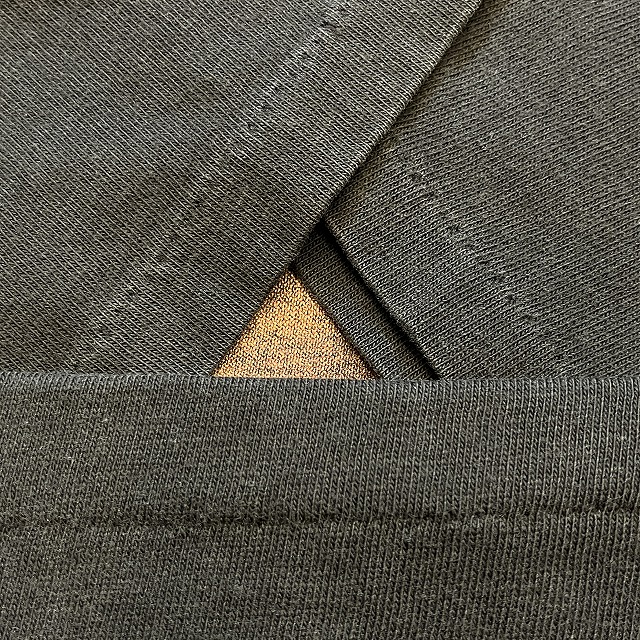 - 襟リブ付近や肩付近に小穴、ダメージがみられます。また、裾にステッチ抜けがみられます。その他、薄汚れ等の年代相応の着用感ございますが、ユーズド慣れされた方でしたら、まだまだ着用していただけます。