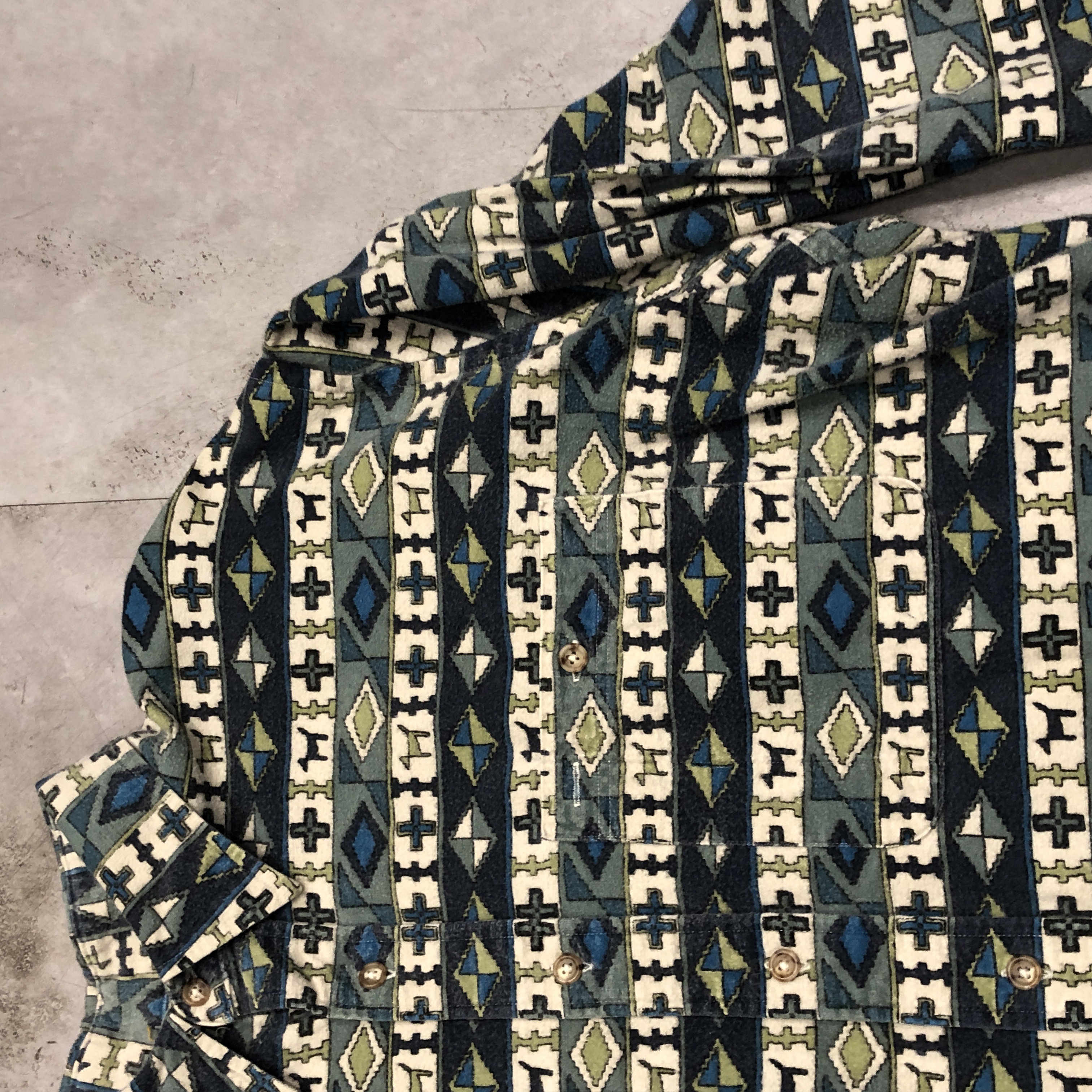 タグディテールから見ても1980年代後半〜90年代頃のUSA製。やはりこの時代のL.L.Beanは、こうした総柄でもどこか“日常に溶け込む”絶妙なバランス感を持っています。