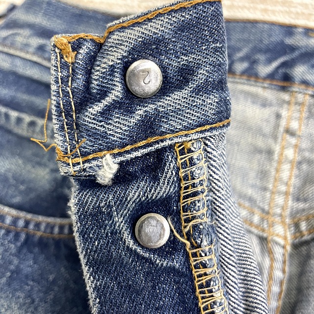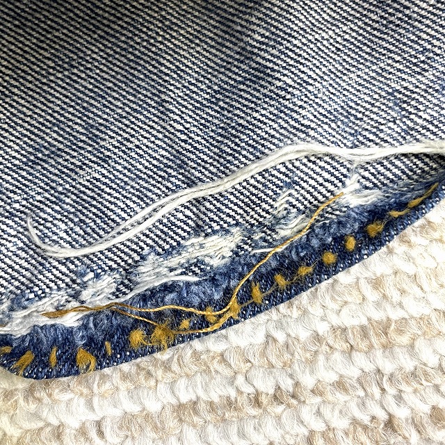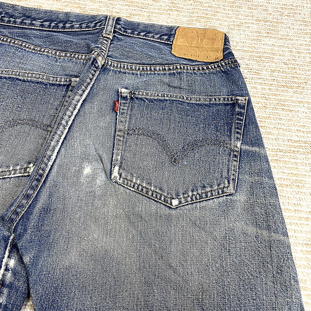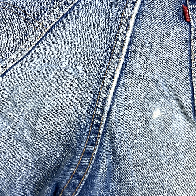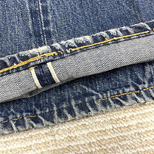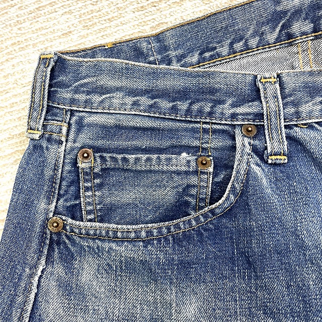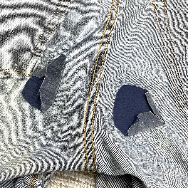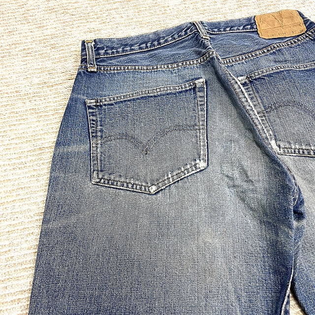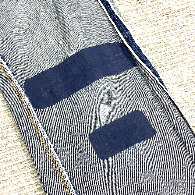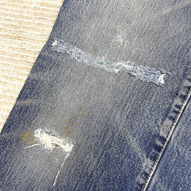 - 画像のように、汚れ、キズ、ステッチ抜け、アタリがあり、右膝付近とヒップ等にリペアがございます。