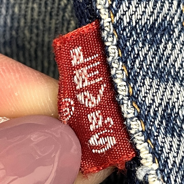 - トップボタン裏刻印『2』、不均等V、平行ステッチ