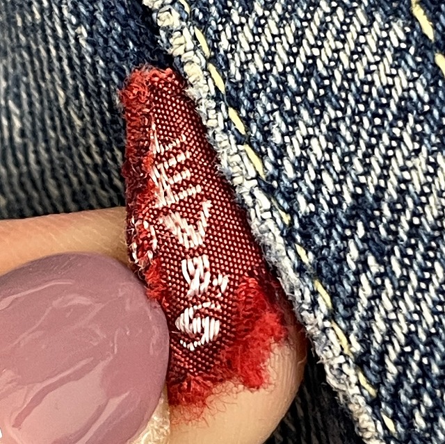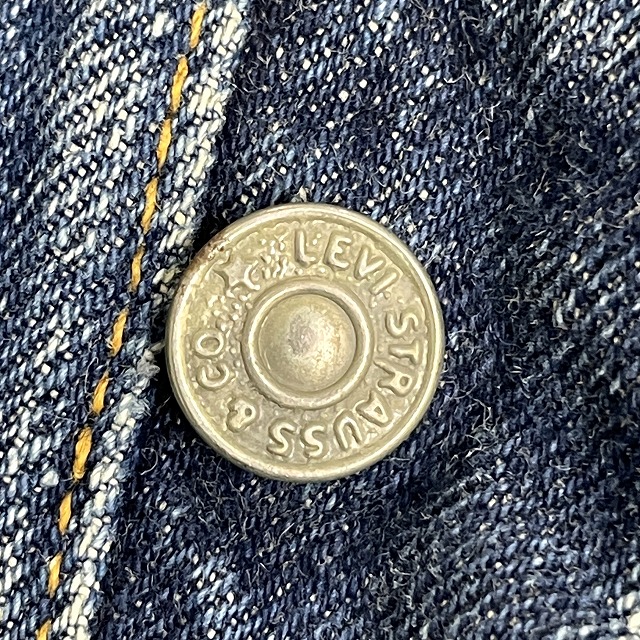 - トップボタン裏刻印『4』、Vステッチ、ウェストシングル、足長R、不均V