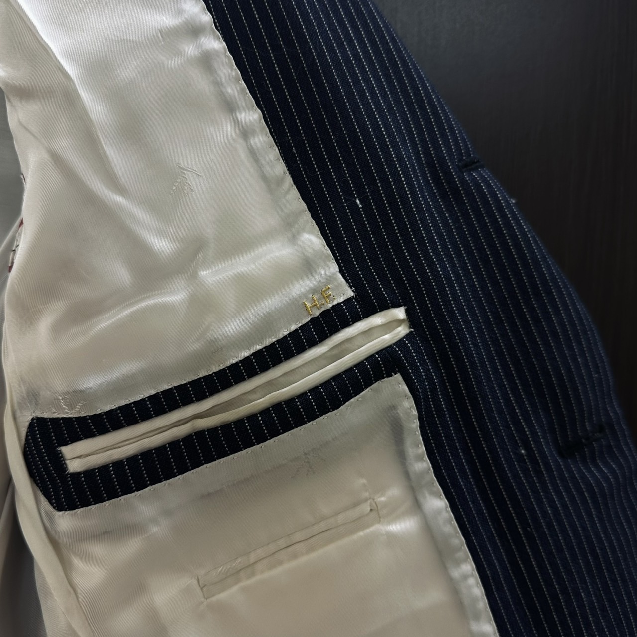 - ジャケット裏地首元、脇下、内タグの薄シミございますが、目立つダメージ等はございません。