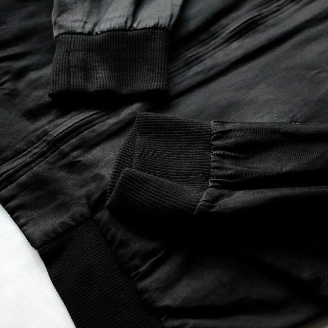 中綿は入っておりませんが、襟の形状やたっぷりとしたアームや身幅は所謂MA-1。そして特筆すべきはその素材。ナイロンやポリエステルで制作されることが多いアイテムですが、こちらなんとレーヨン仕様。