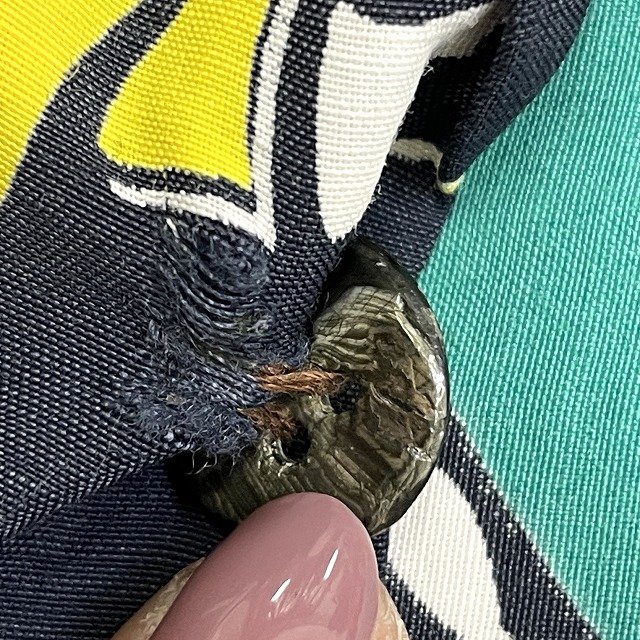 フロントボタンが数か所交換されており、ボタン付け根の生地にダメージがございます。