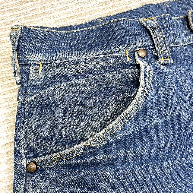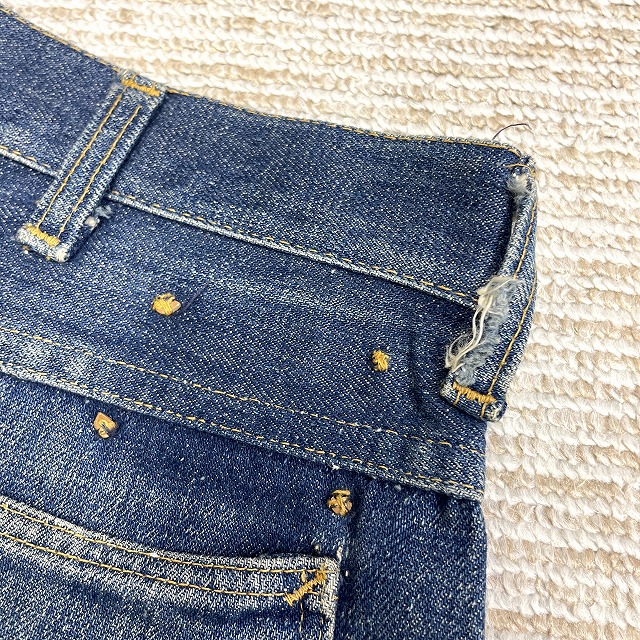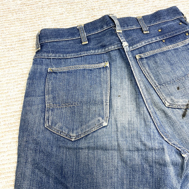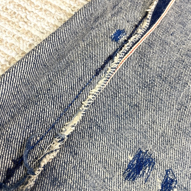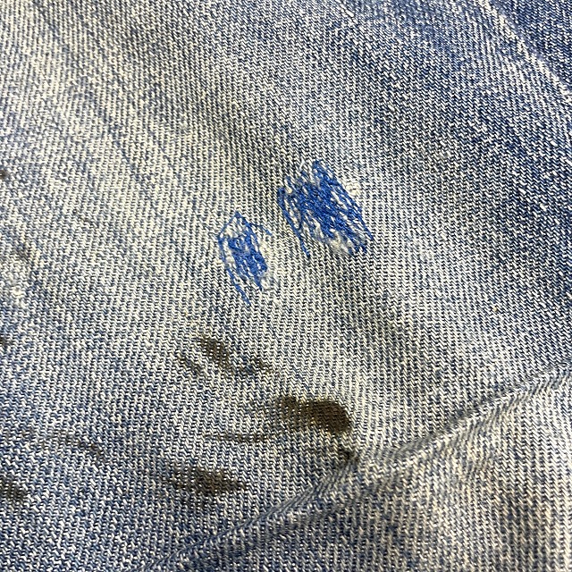 - 画像のように、汚れ、キズ、スレ、ステッチ抜けがあり、両膝付近等にリペアがございます。
