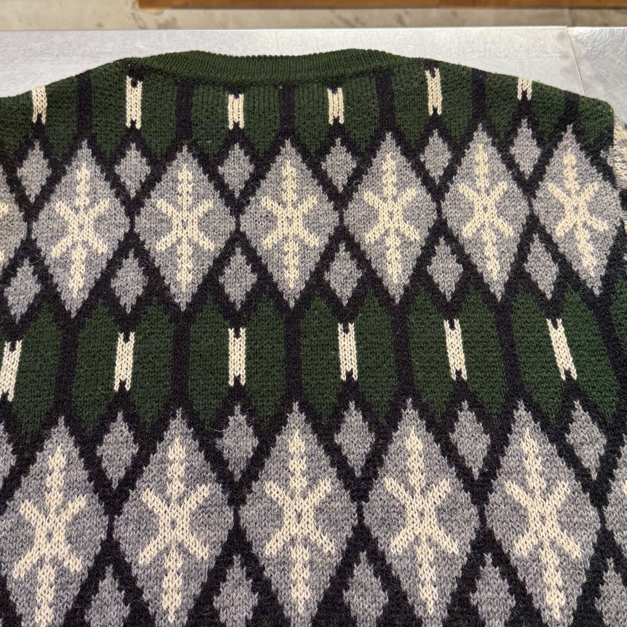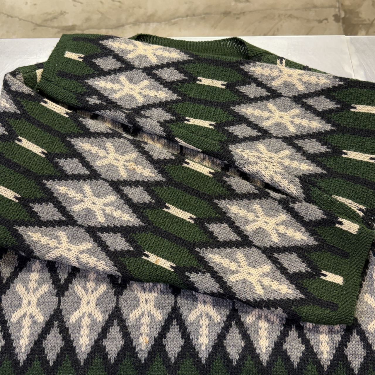 幾何学模様の総柄ニット