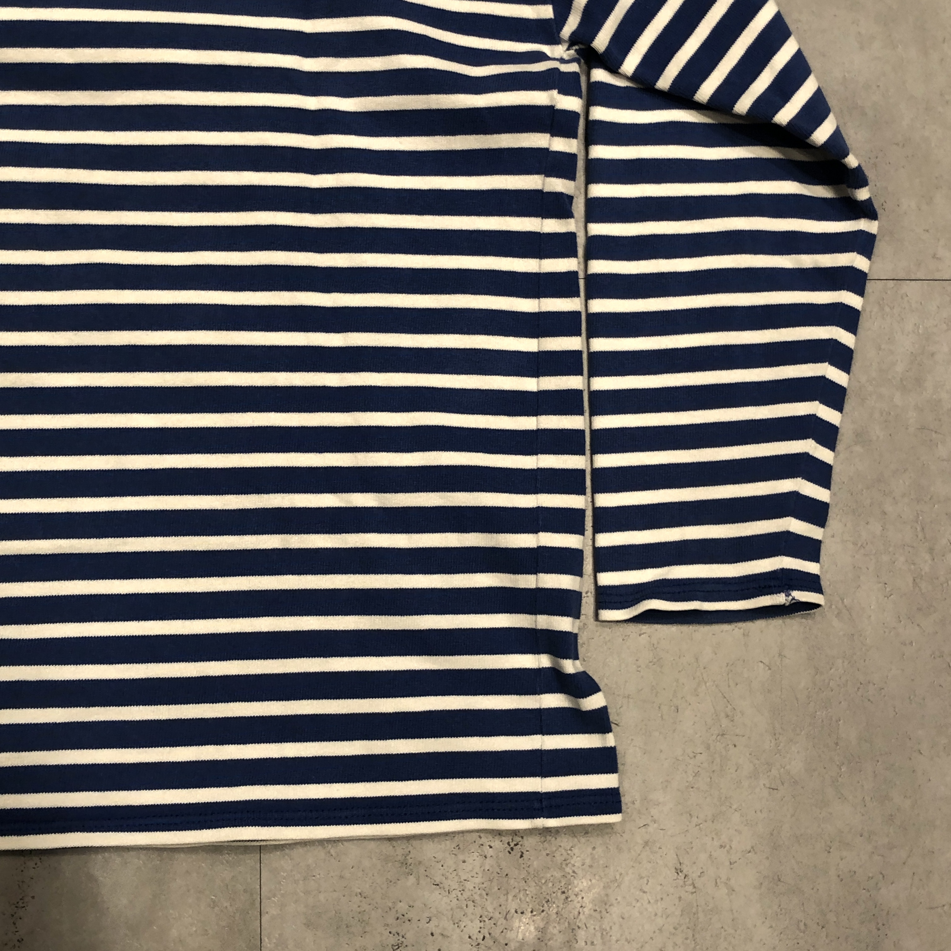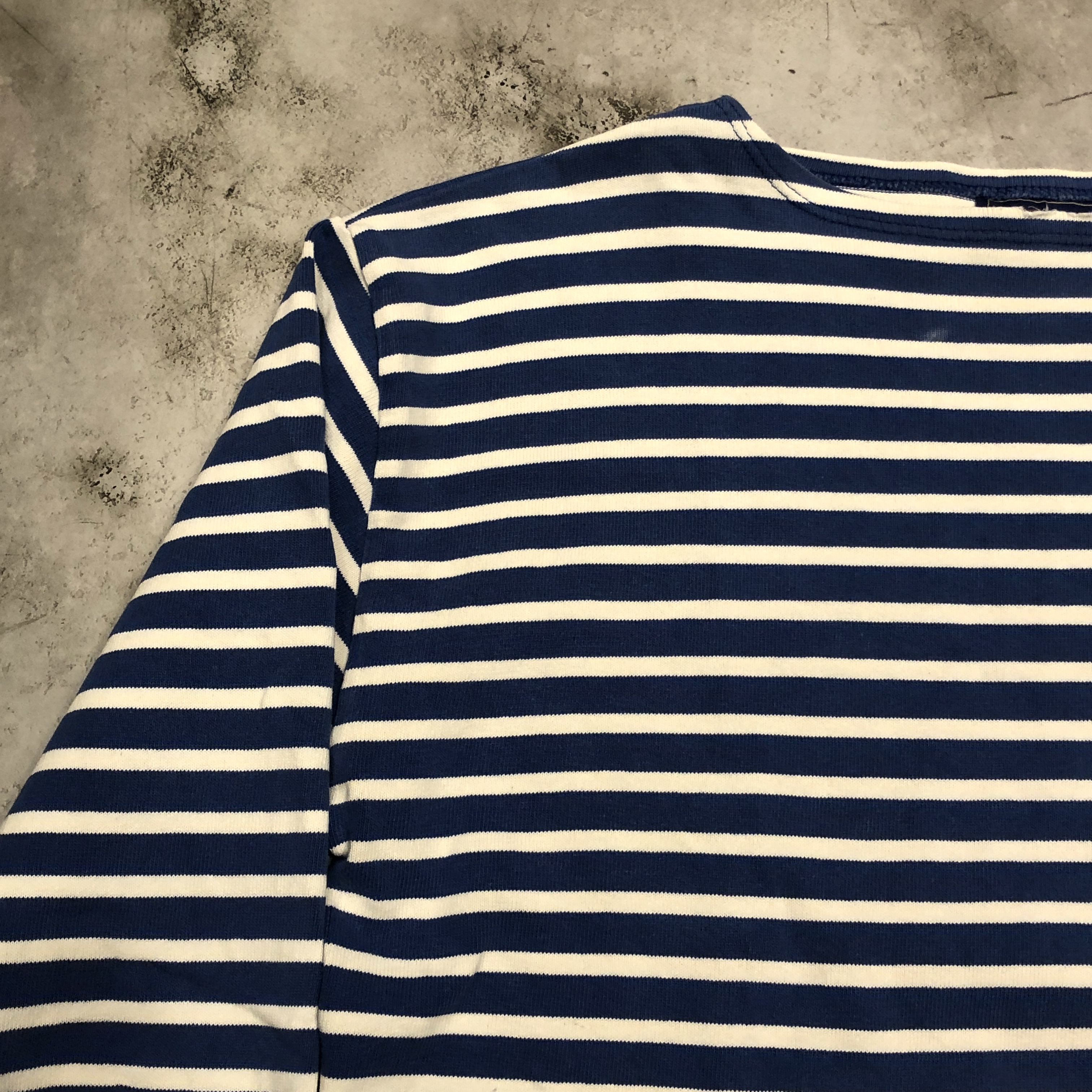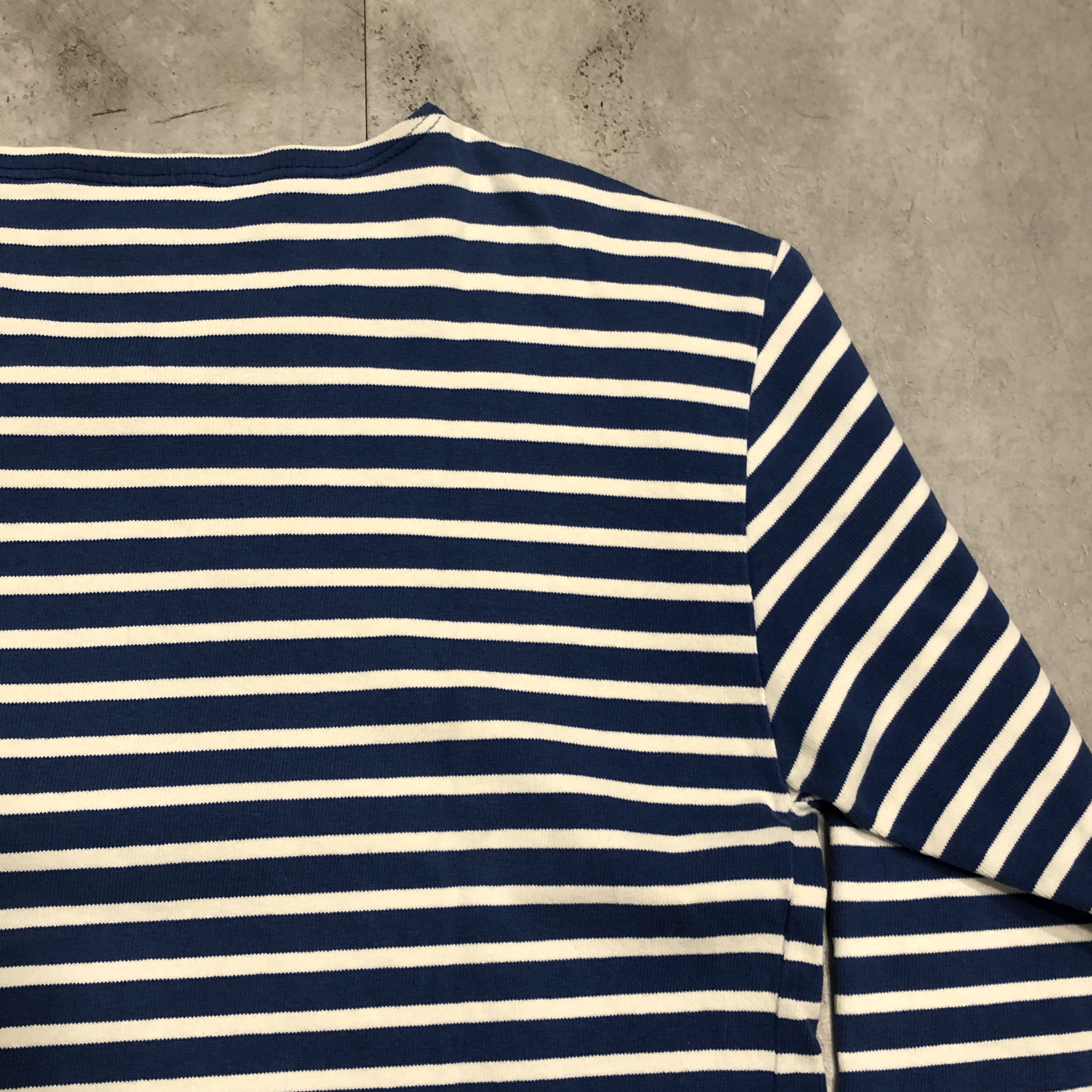 クラシックなボートネックと肩線の落ちたストレートなパターンは、重ね着にも最適。袖口にはブランドのネームパッチを控えめに配置。製造はもちろんフランス自社工場で行われています。