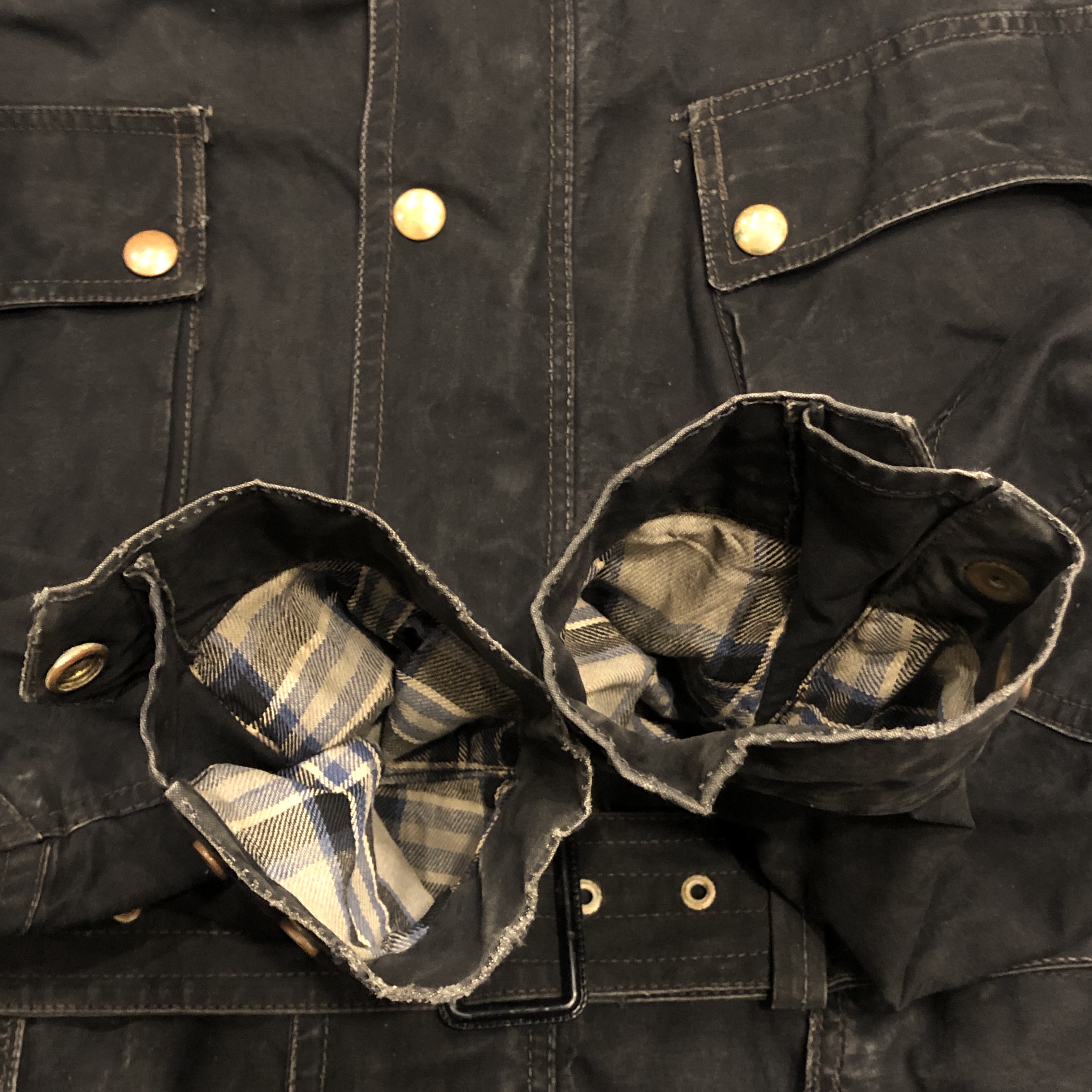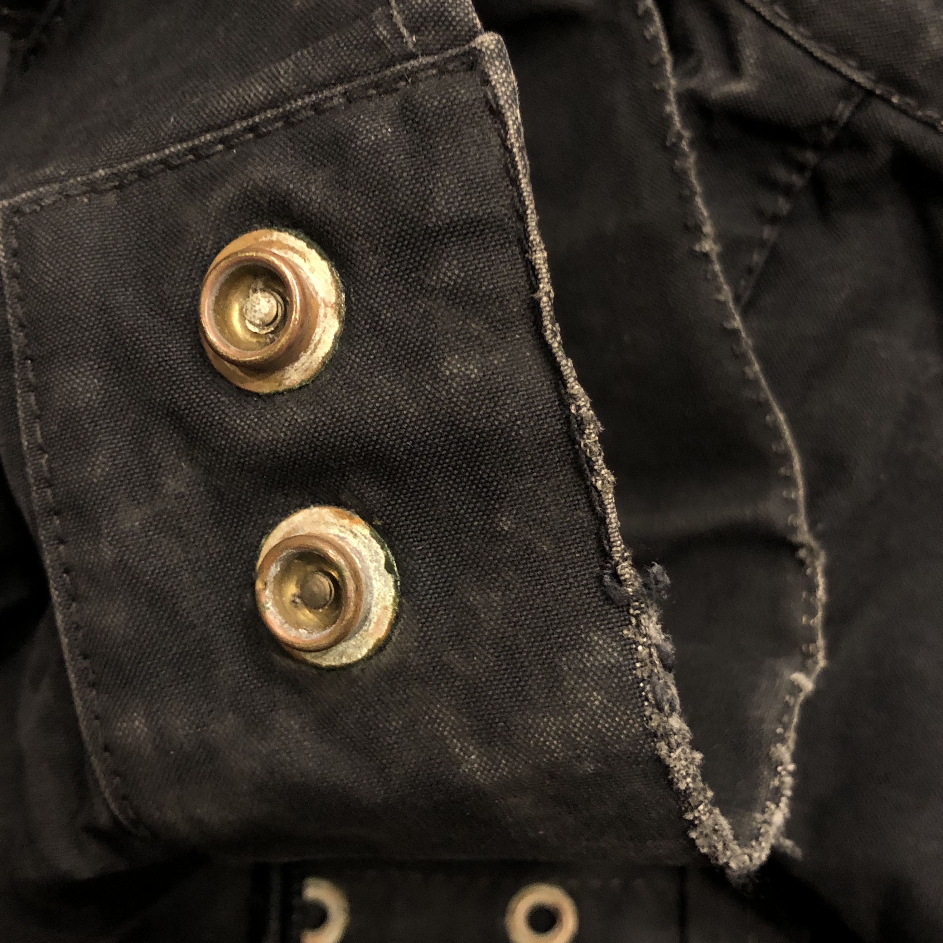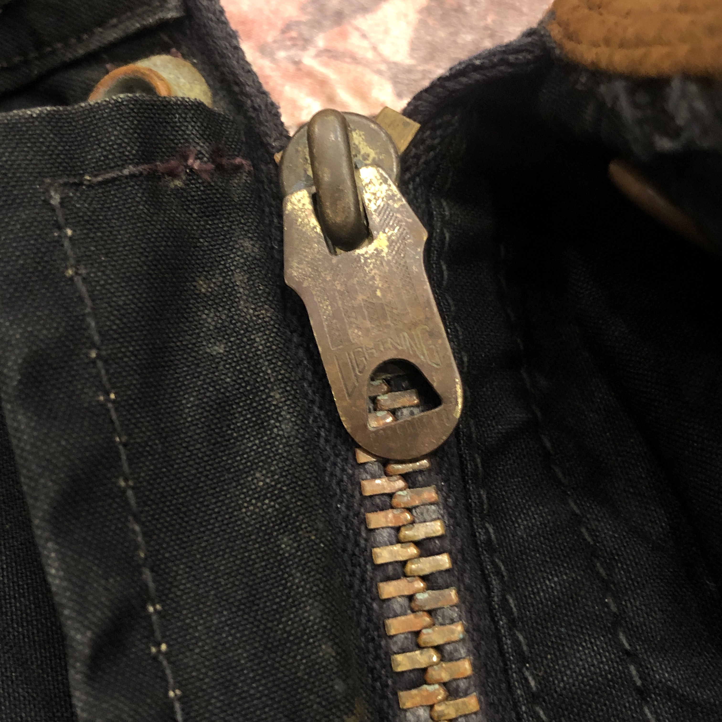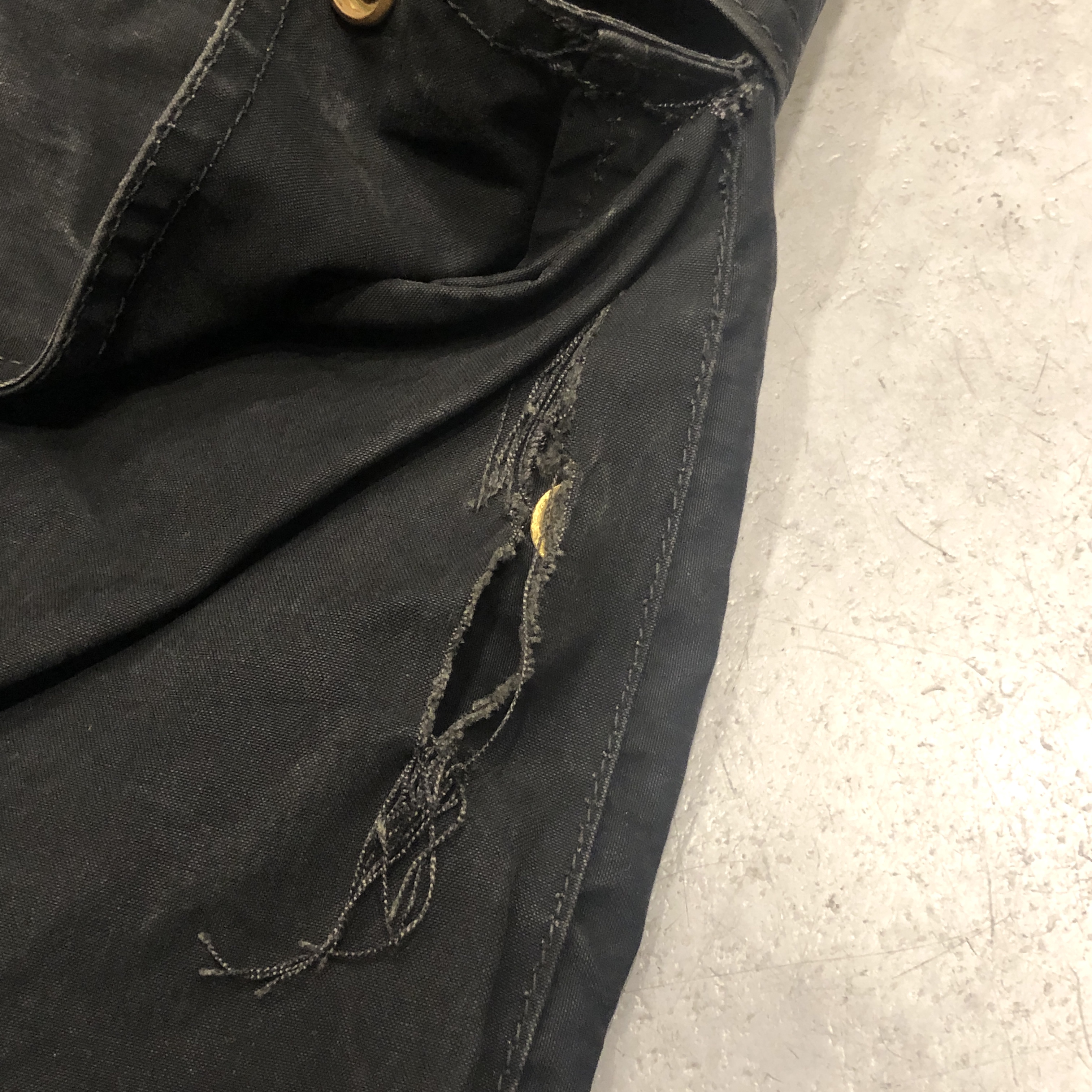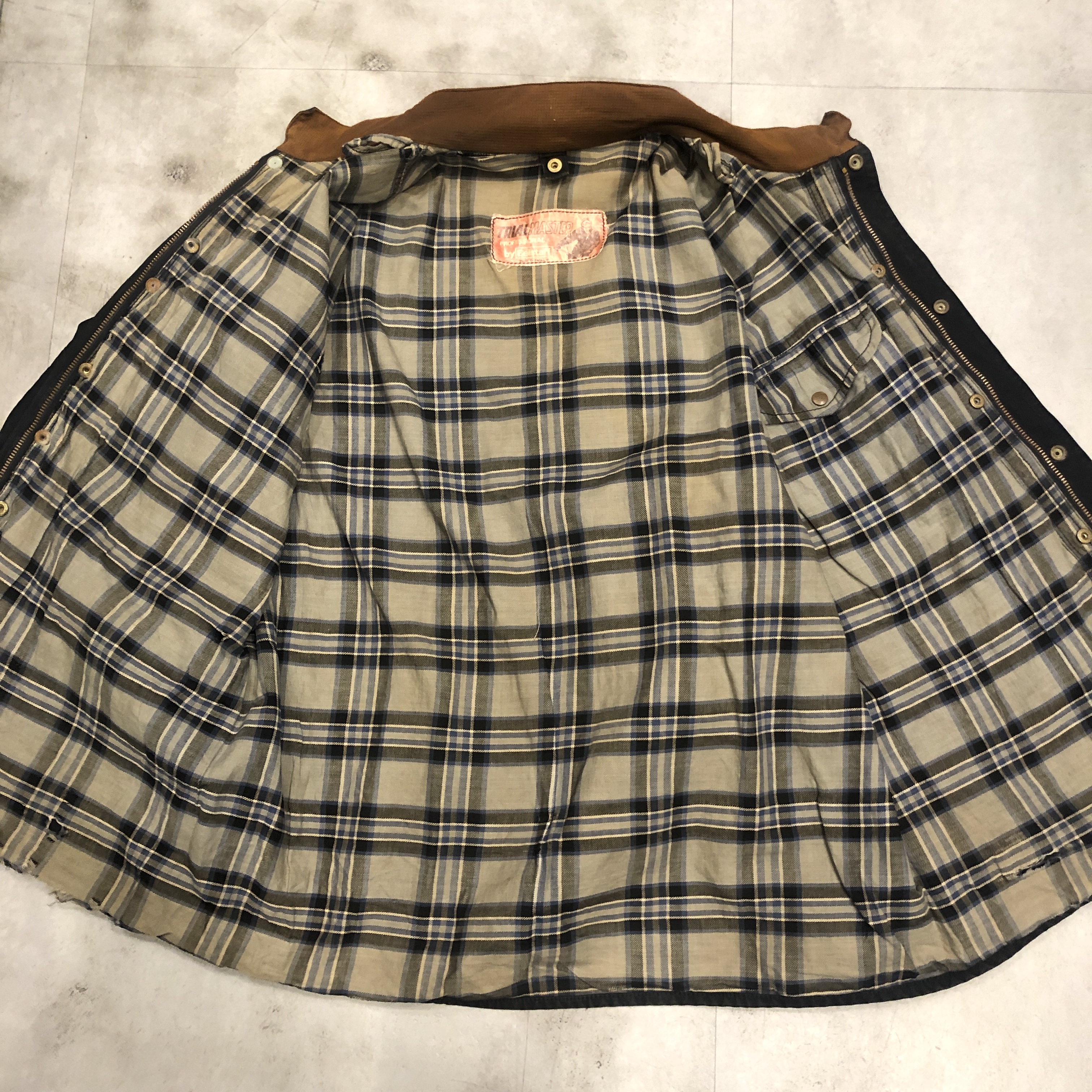 - オイルド生地特有のアタリ、スレ、内側裾部分と襟部分、左ポケットのダメージがそれぞれ画像の様にございますが、ヴィンテージ慣れされた方でしたら問題なく着用していただける範囲です。