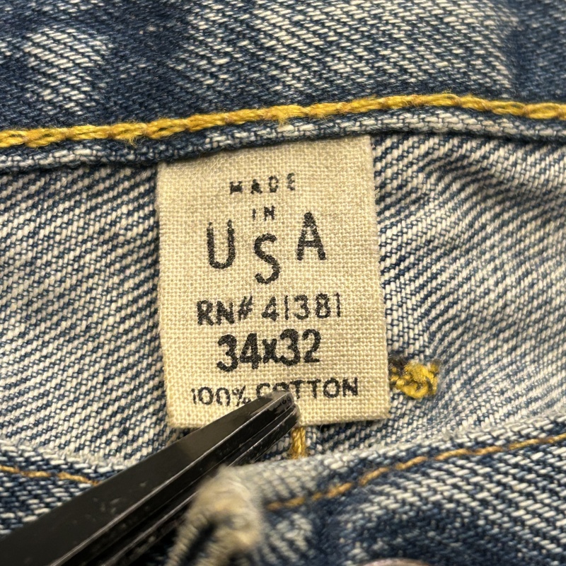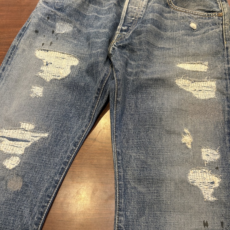 - 裾上げ済。元々ユーズド加工が施されております。未使用品です。