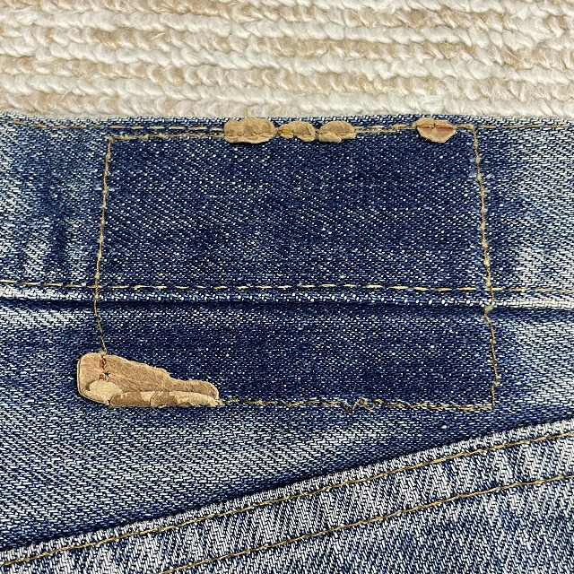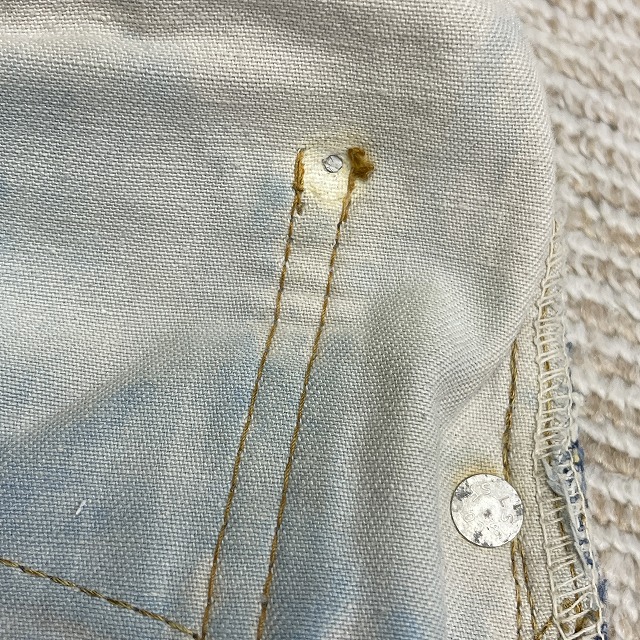 - 画像のように、薄汚れ、擦れ、キズがあり、ポケット裏側のリベット受けが欠損しております。