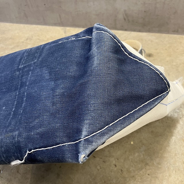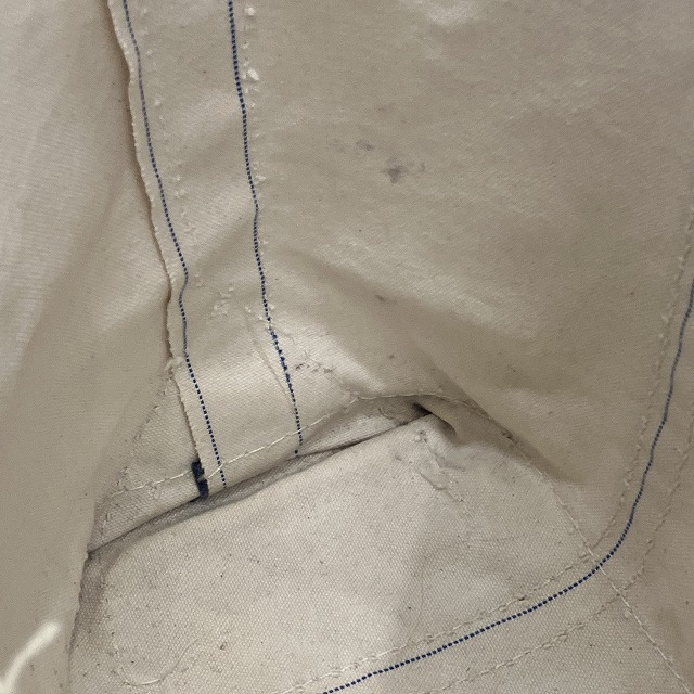 - 四つ角部分にスレや若干の破れがみられます。また、ハンドル部分にほつれ、サイドの縫い目のステッチ抜けがみられます。その他、年代相応の使用感はございますが、ユーズド慣れされた方でしたら、まだまだ問題なく使用していただけます。