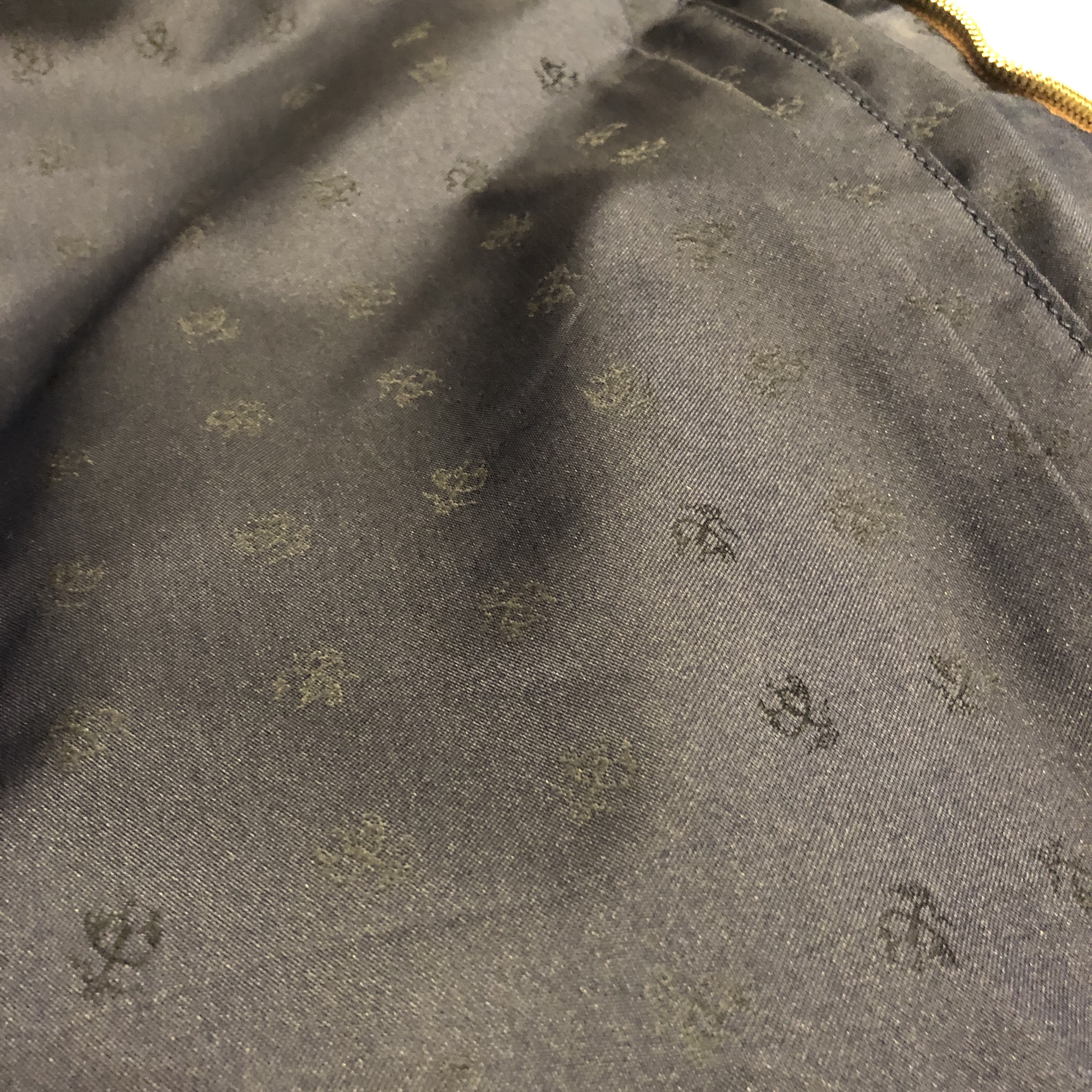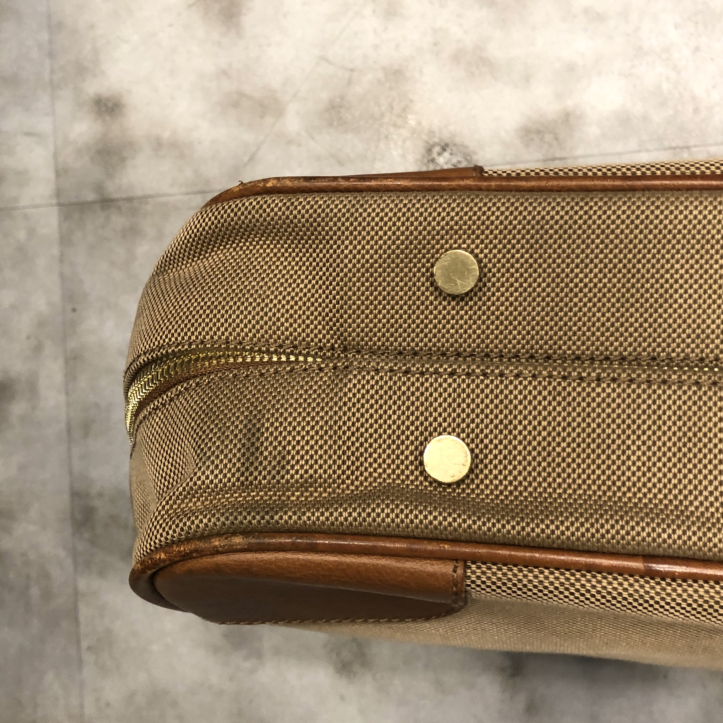 - 年代相応の使用感、側面下方のスレ汚れが画像の様にございますが、古着慣れされている方でしたら問題なくお使いいただける範囲です。ジッパーの引き手レザーが1つ画像の様に欠損しております。