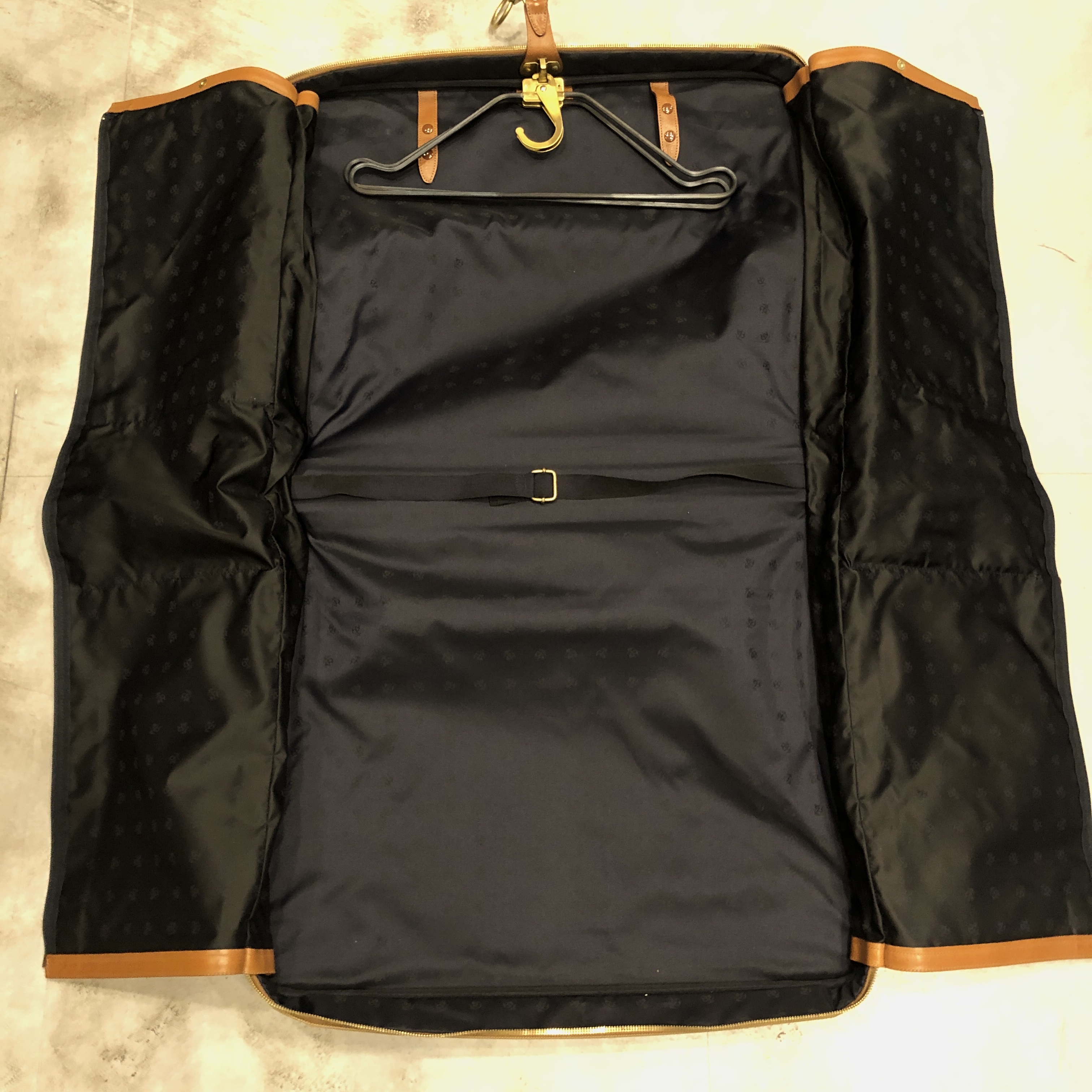いわゆるスーツやコートを持ち運ぶためのプロダクトでありながら、単なる実用品に留まらない、明確な“格”を感じさせる一品です。