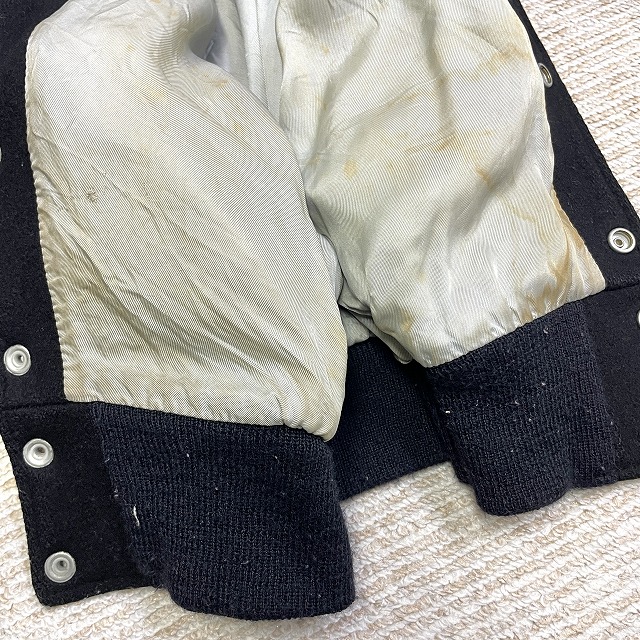 - 画像のように、数か所に虫食いのようなキズがあり、裏地やポケット内布に汚れがございます。