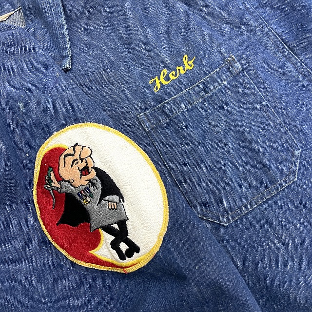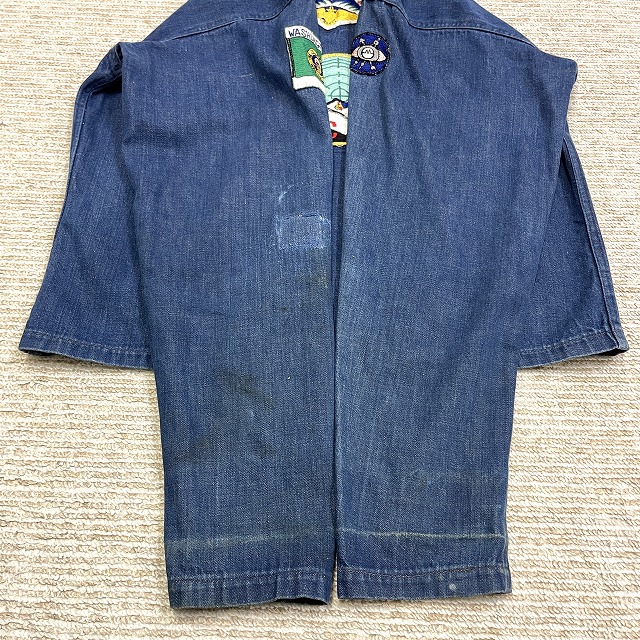 右胸ポケット上、右肩、袖にリペアがございます。