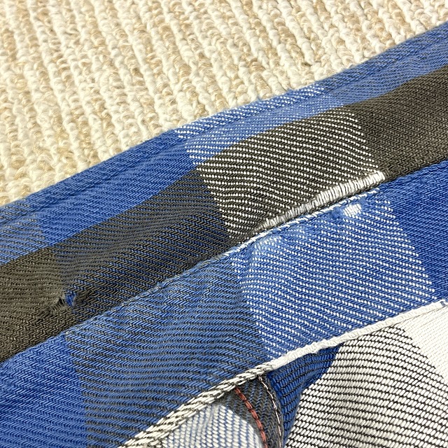 「ブルー×グレー×ホワイトチェック、サイズM」